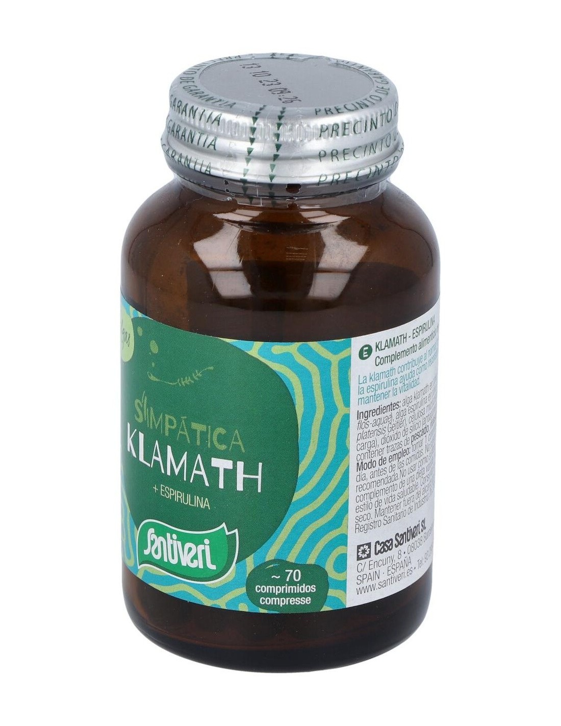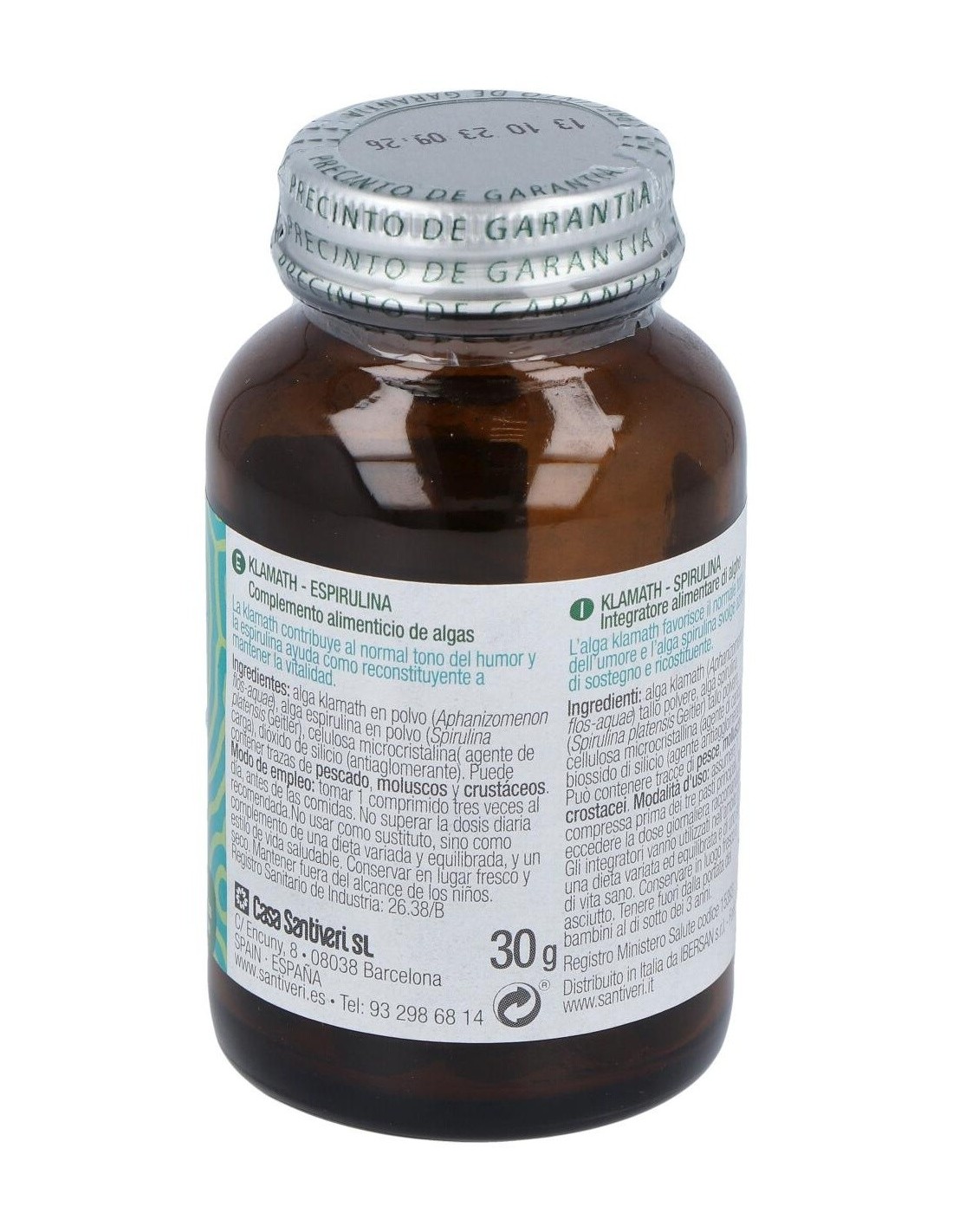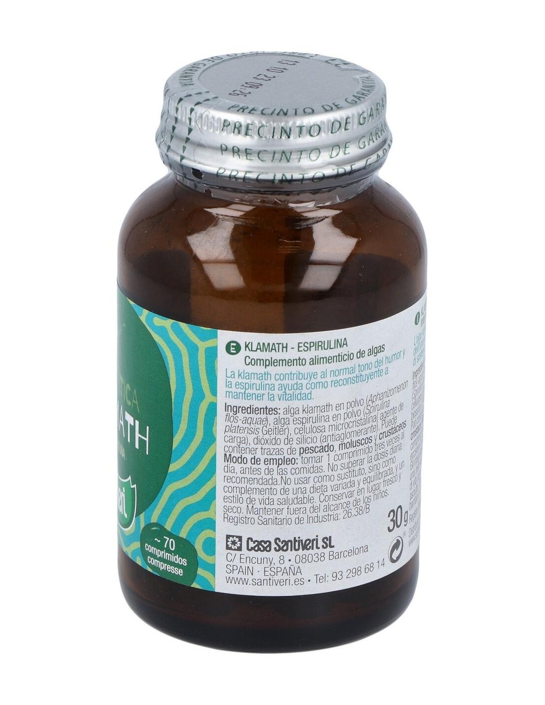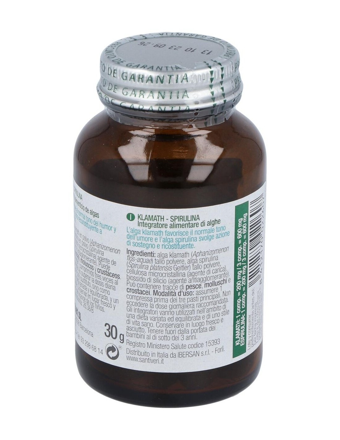 SANTIVERIComplemento alimenticio con alga Klamath, que contribuye al normal tono del humor y espirulina, que ayuda como reconstituyente a mantener la vitalidad. Apto para veganos.