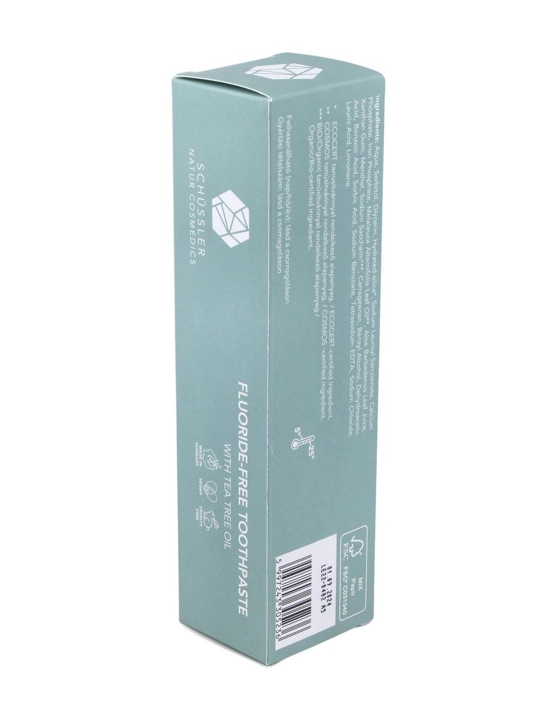 SCHUSSLER NATUR COSMEDICSEjerce un potente efecto sobre dientes y encías sensibles, además de dejar un agradable frescor mentolado. Se trata de una pasta natural ECOCERT, apta para veganos y cruelty free.