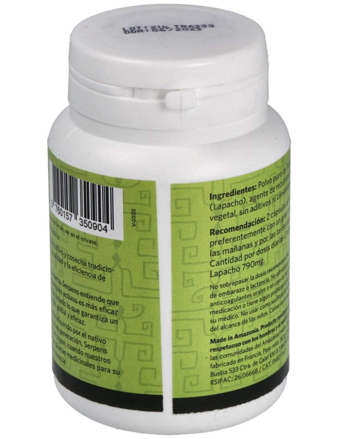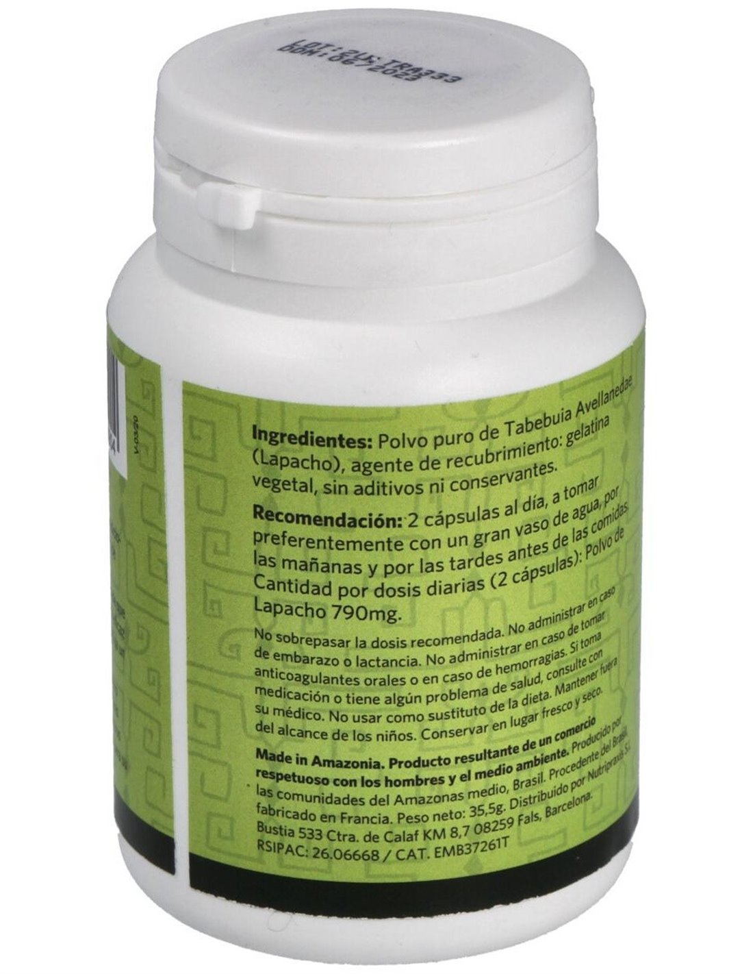 Polvo puro de Tabebuia Avellanedae (Lapacho)............. 1200 mg
