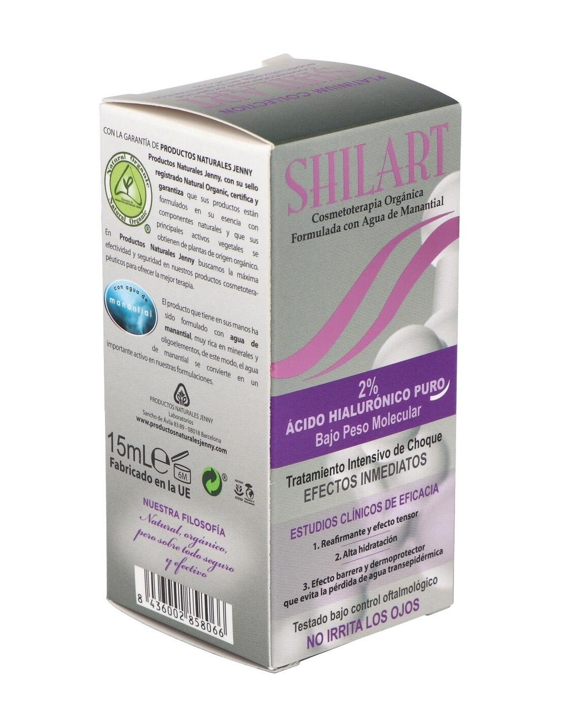 Este suero de contorno de ojos contiene un 2% de ácido hialurónico de bajo peso molecular 100% certificado y colágeno de acacia. Gracias a esta exclusiva combinación, se consigue reducir y eliminar las arrugas del contorno de ojos (patas de gallo), y combatir la flacidez del párpado reafirmándolo. Además, aporta un potente efecto antioxidante e hidrata intensamente. Apto para todo tipo de pieles. La fórmula se completa con agua de manantial procedente del Parque Natural de Montseny, muy rica en minerales y oligoelementos.