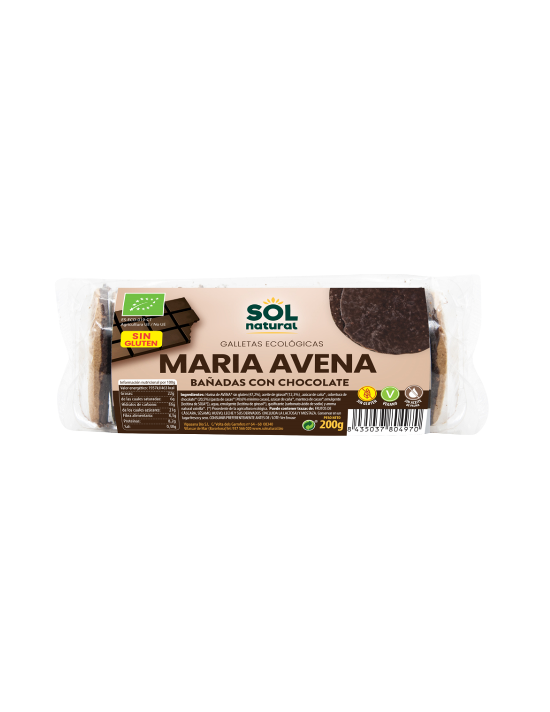 Marías Avena Sin Gluten Bañadas Con Chocolate Bio 245 g de Solnatural