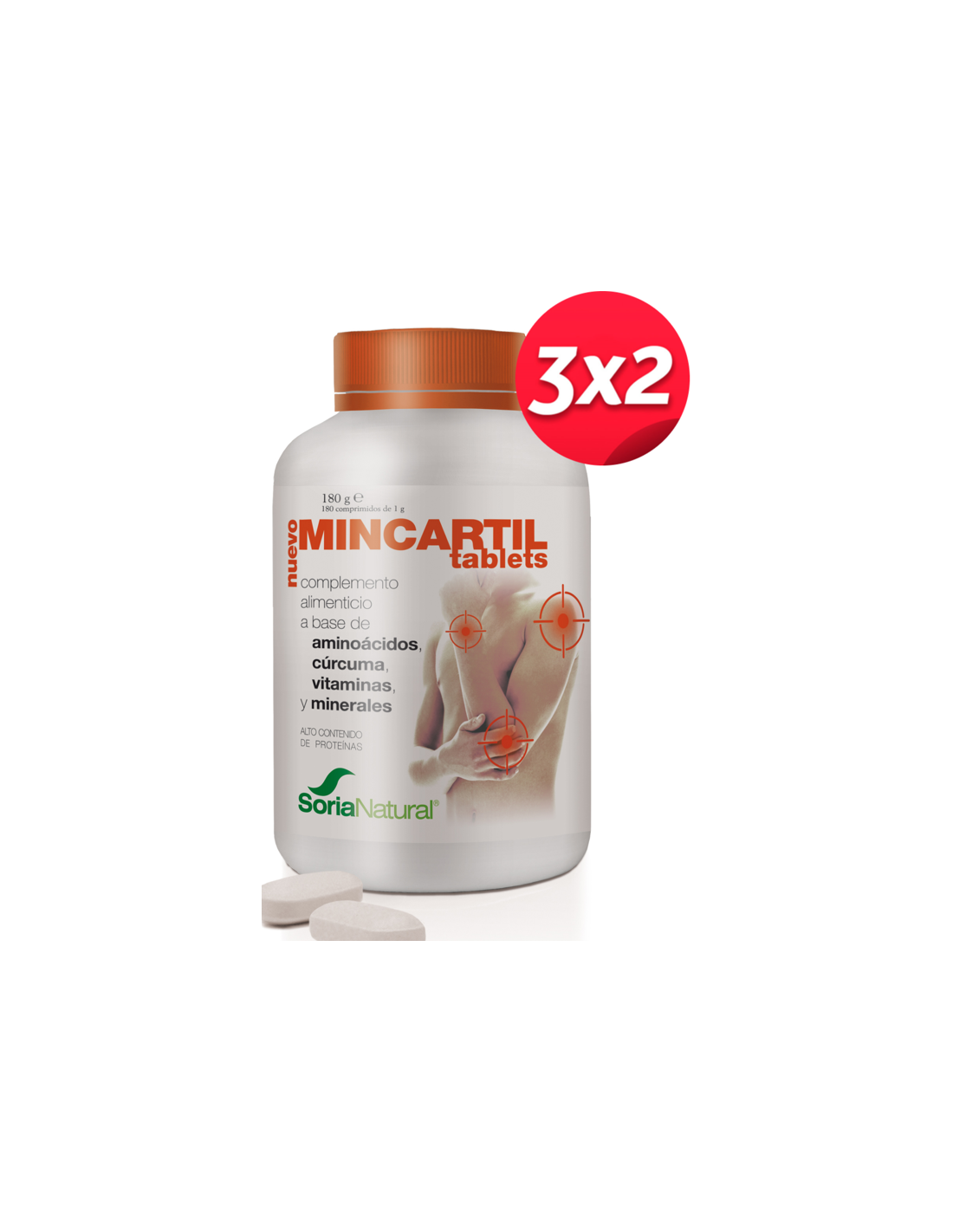 SORIA NATURAL 3X2Mincartil Classic está elaborado exclusivamente con aminoácidos de origen vegetal, provenientes de la soja y del arroz, que presentan una buena complementación proteica garantizando el aporte de proteínas de alta calidad y de gran valor biológico. Dicha proteína forman parte del colágeno y de los proteoglicanos necesarios para la estructura del hueso, cartílago, piel y otros tejidos conectivos._x000D_