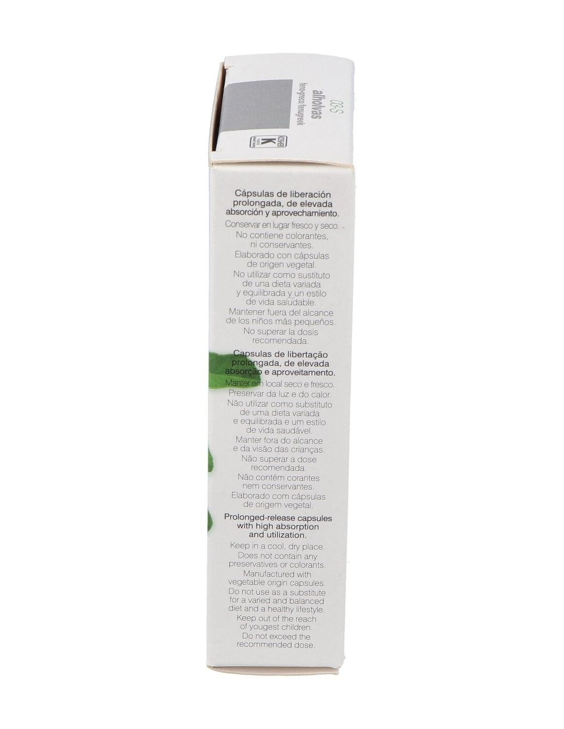 Extracto liofilizado de alholvas, estabilizador: celulosa microcristalina, agente de recubrimiento: copolímero neutro.