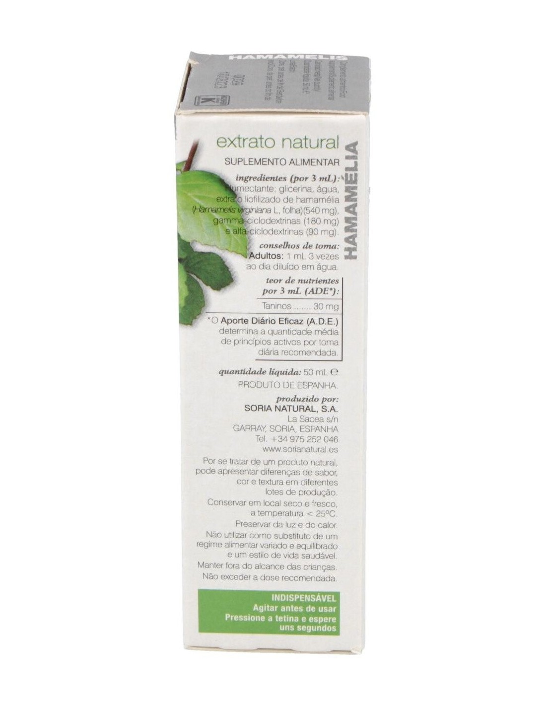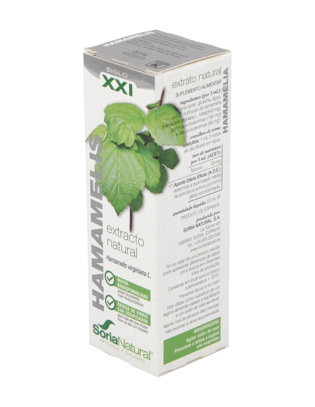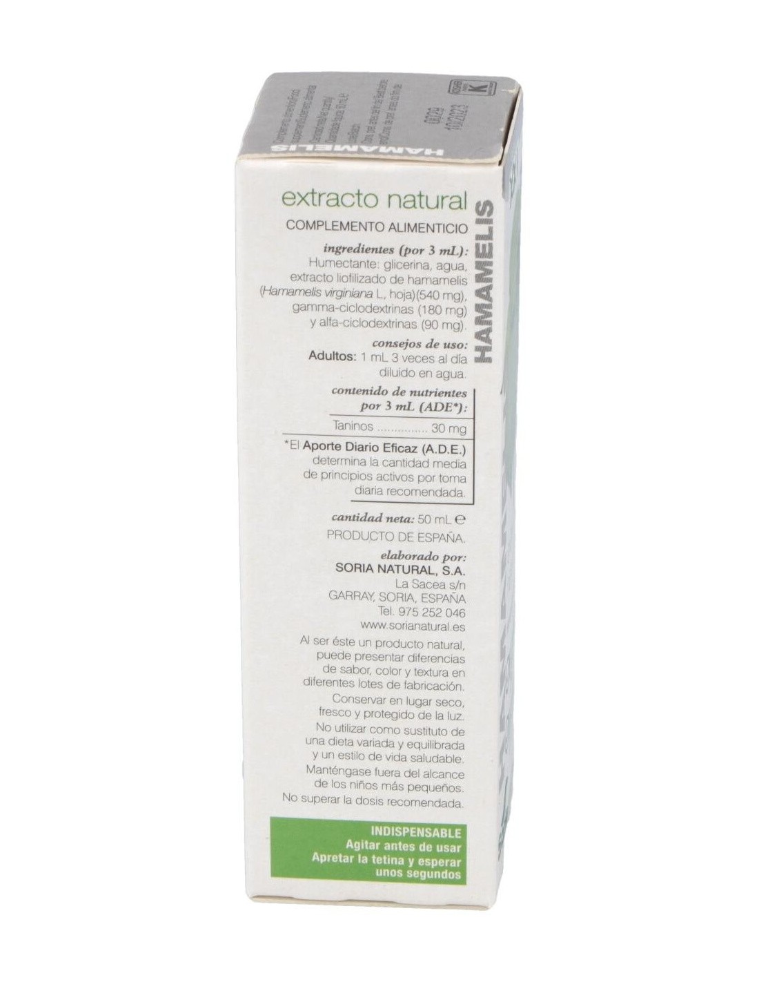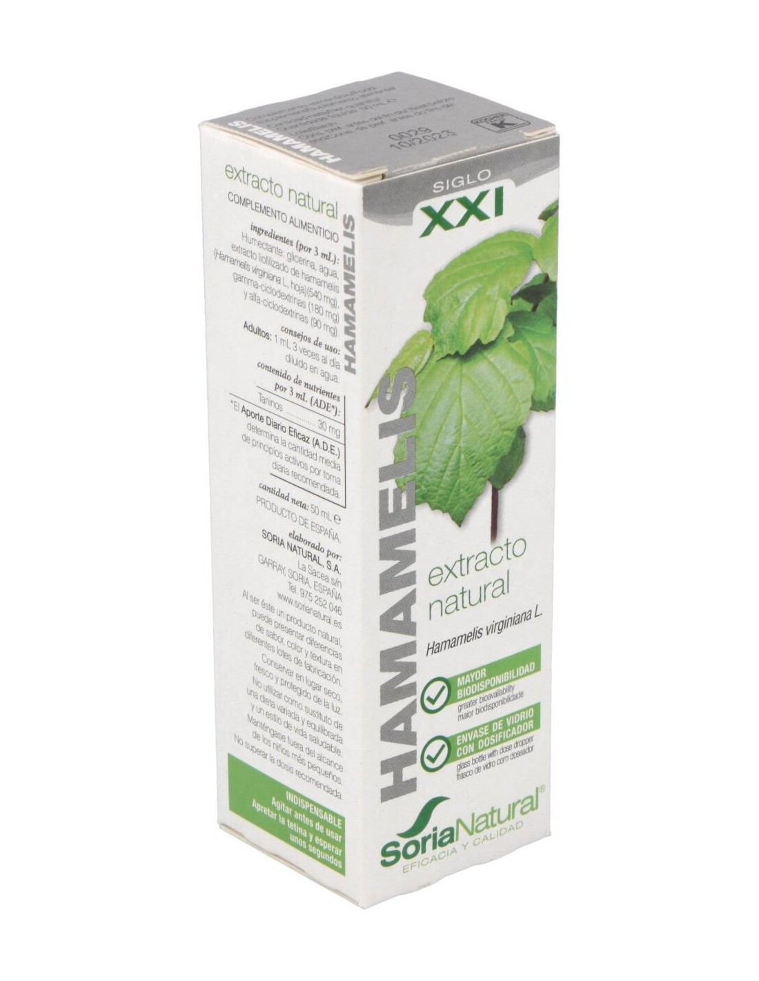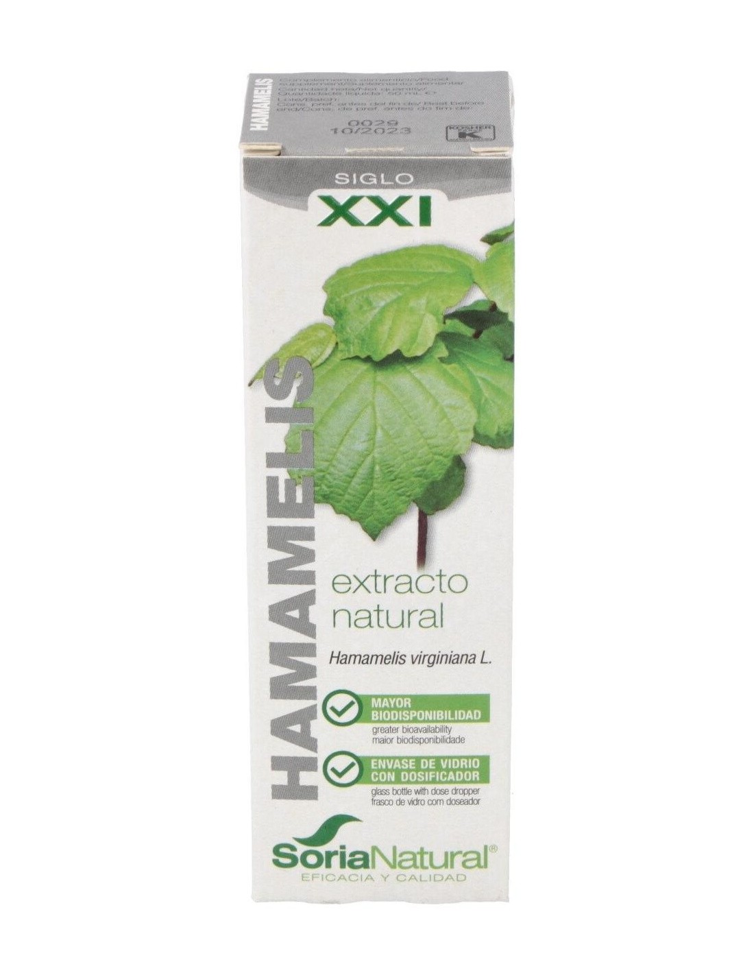 Soria Natural Extracto de Hamamelis Fórmula XXI 50ml es un complemento alimenticio que aporta propiedades vasoconstrictor venoso, acción vitamínica P, astringente, antiinflamatorio y antioxidante.