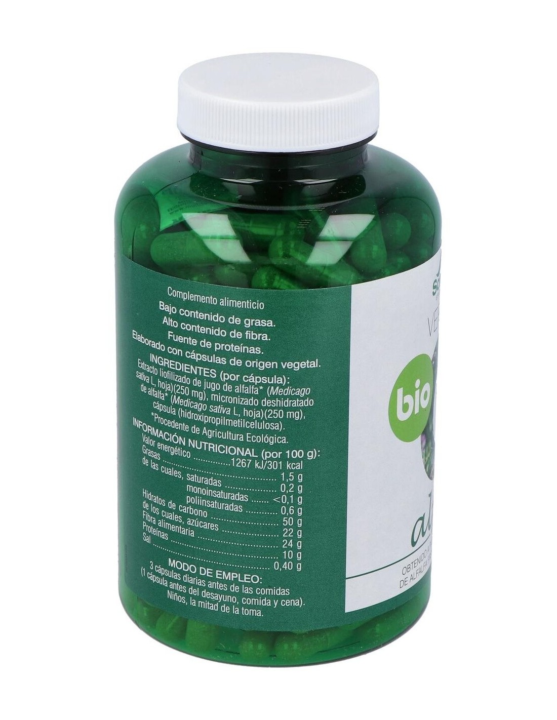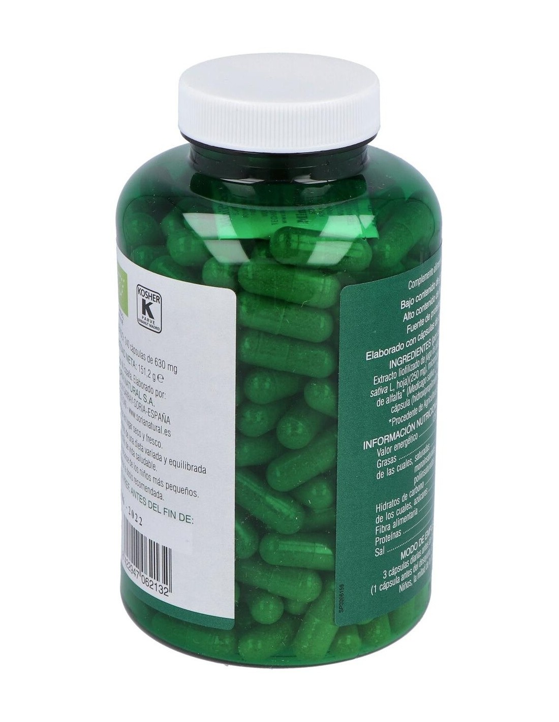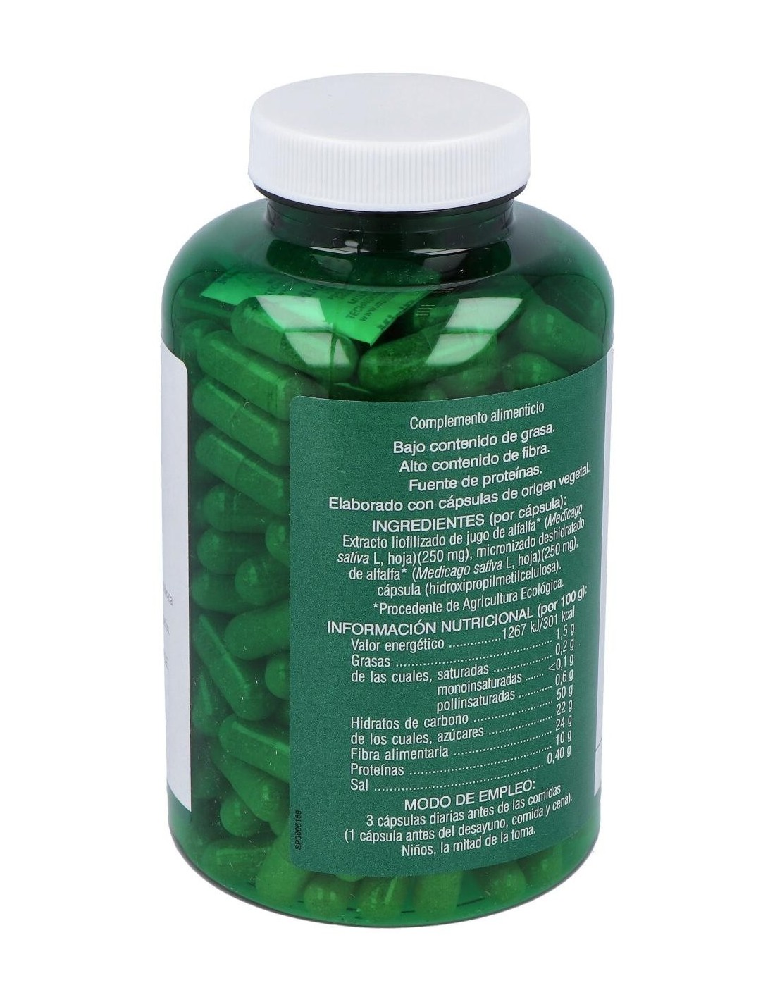 Extracto liofilizado de jugo de alfalfa* (hoja) 250 mg, micronizado deshidratado de alfalfa* (hoja) 250 mg, cápsula (hidroxipropilmetilcelulosa).