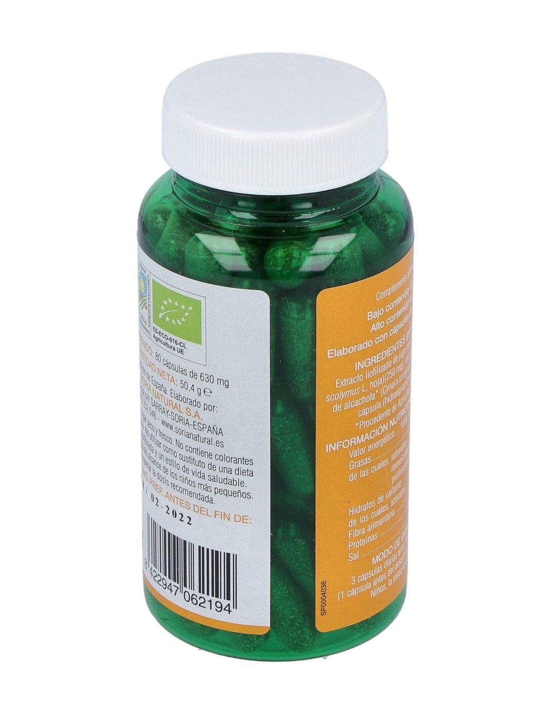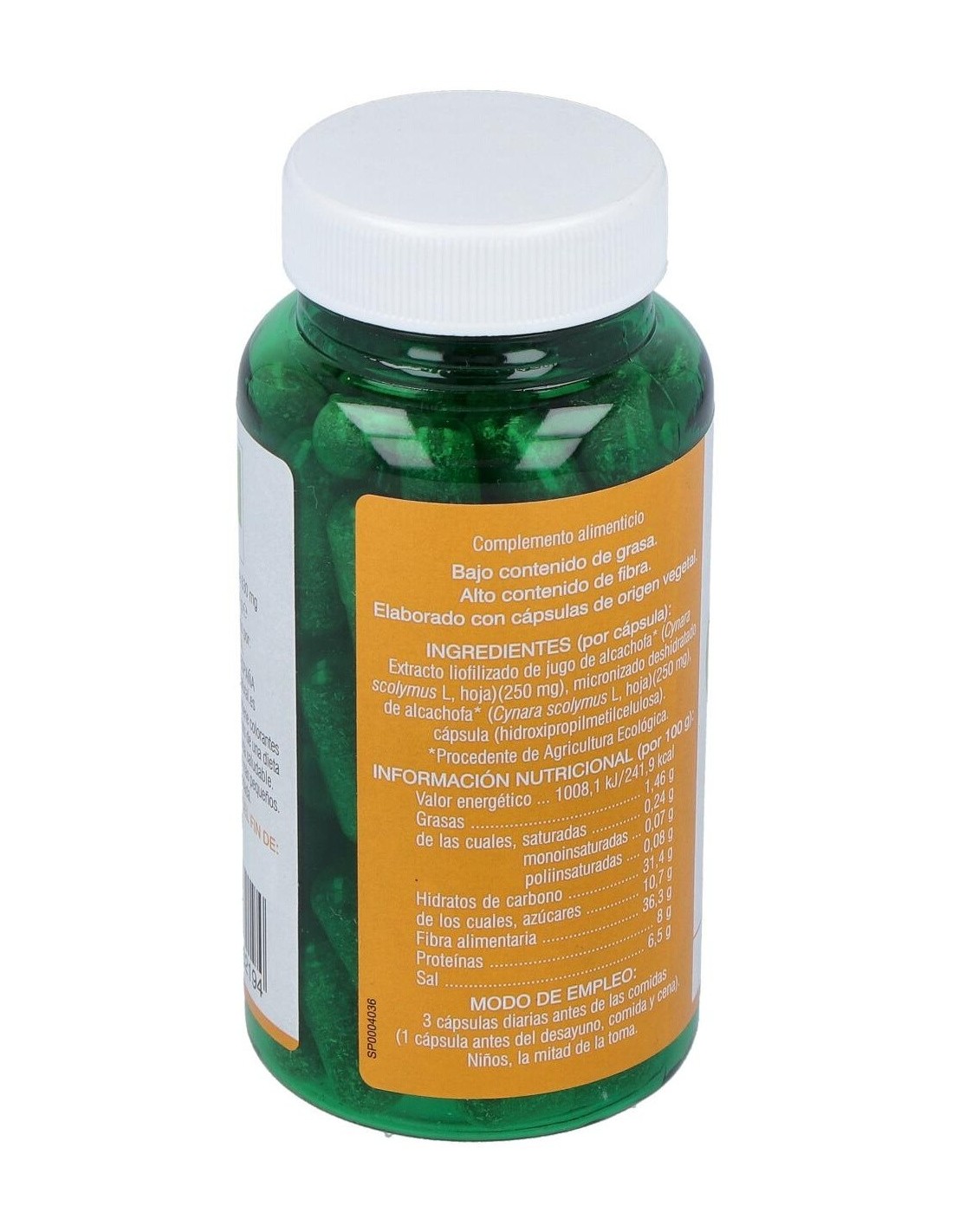 Composición por cápsula: 250 mg de extracto liofilizado de alcachofa, 250 mg de micronizado deshidratado de alcachofa.