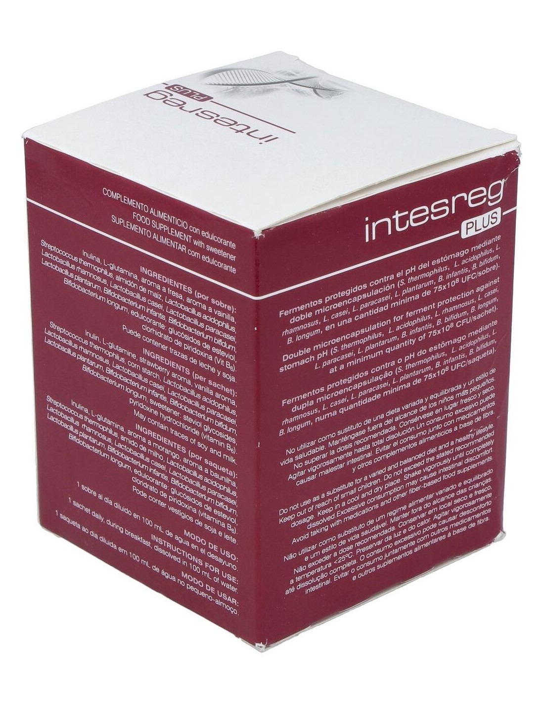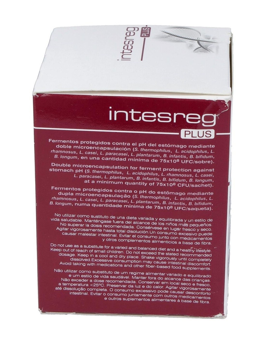 Inulina 6419 mg, L-glutamina 2000mg, streptococcus termophilus 1.5x10 (9 potencia) UFC/CFU, lactobacilus acidophilus 7.5x10(8 potencia) UFC/CFU, lactobacilus rhamnosus, casei, paracasei y plantarum, bifidobacterium infantis, bifidum, longum 7.5x10(8 potencia) UFC/CFU, B6 .1.4 mg