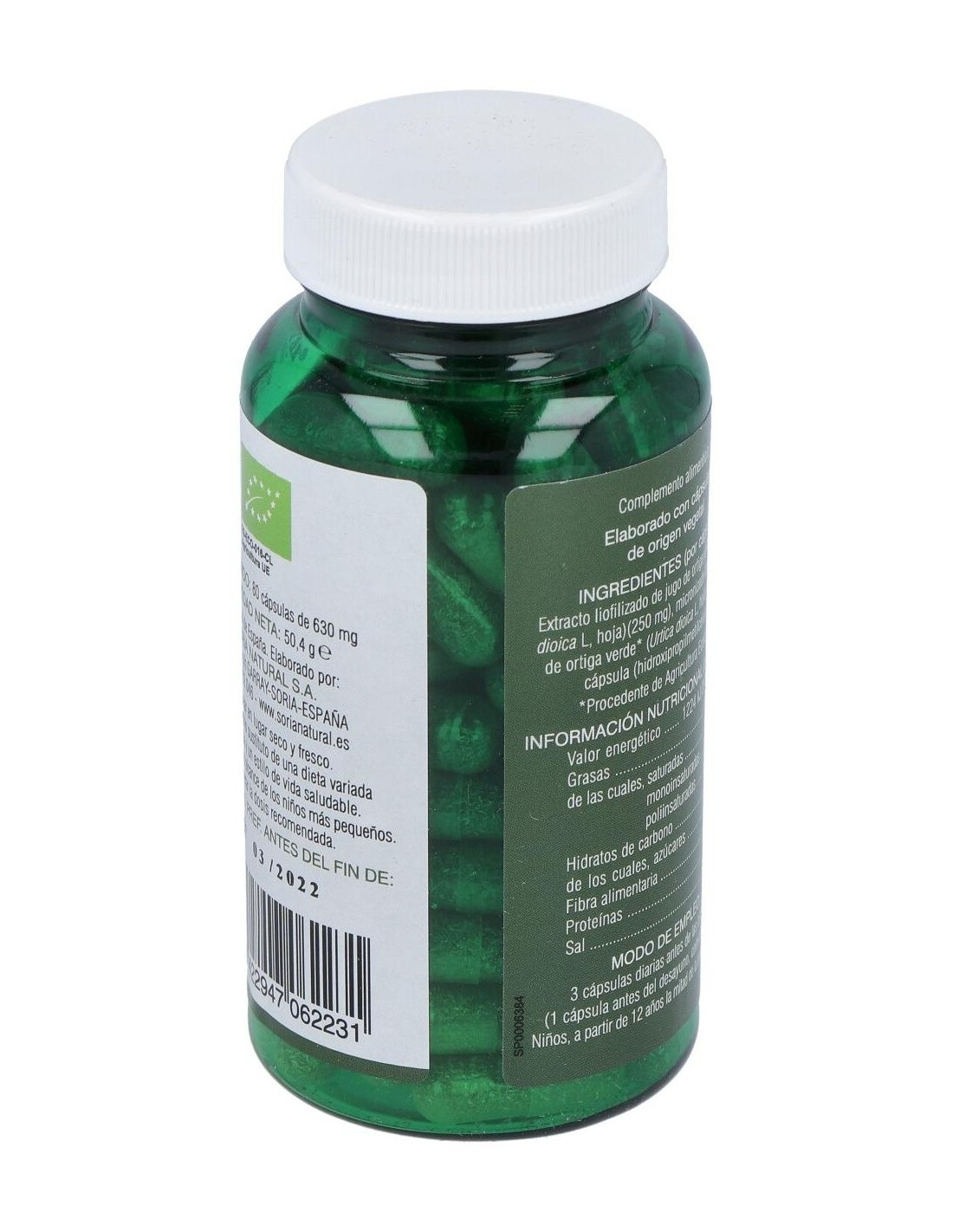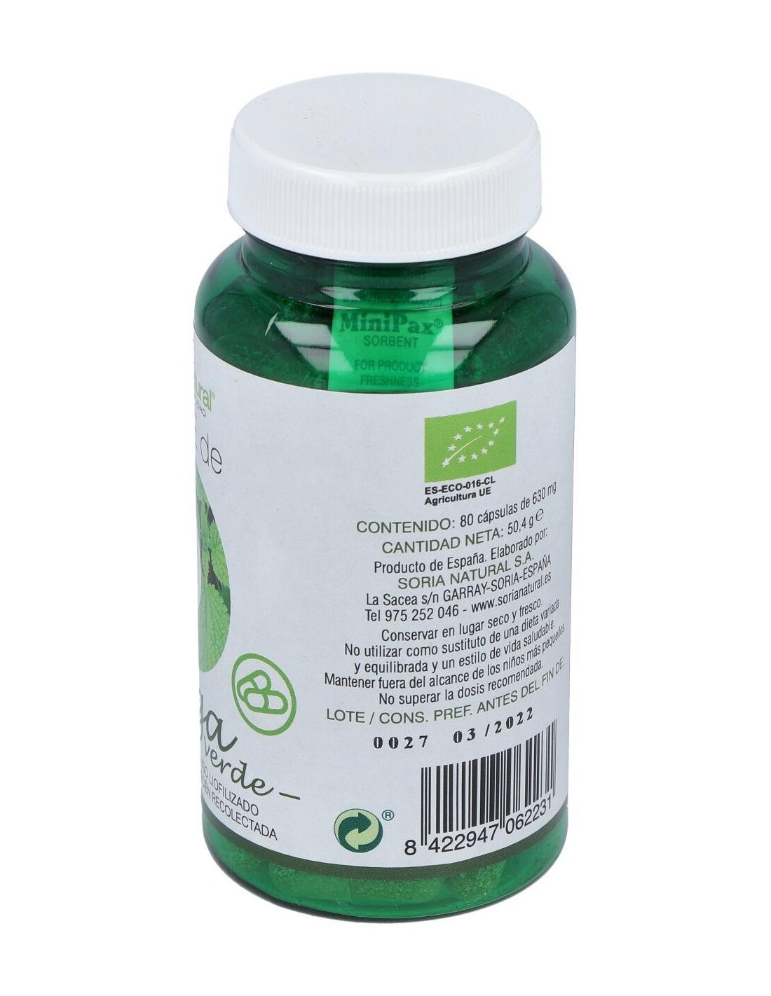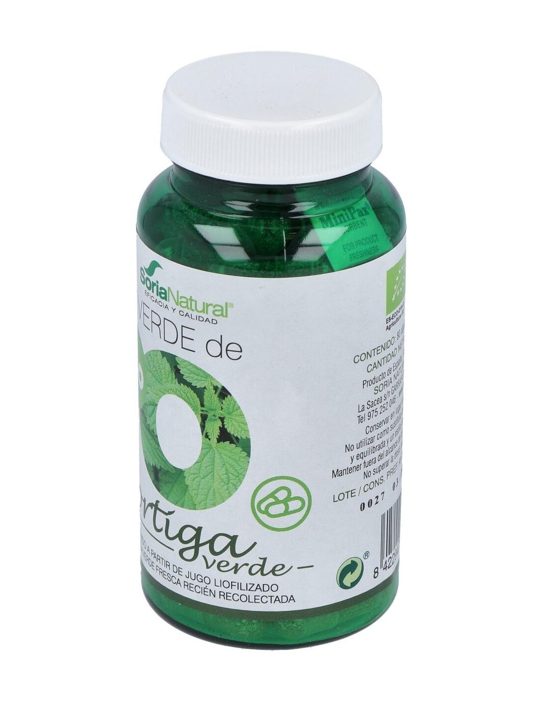 SORIA NATURALOrtiga verde obtenida a partir de jugo liofilizado de ortiga verde fresca recién recolectada. Se utiliza principalmente como reconstituyente, depurativo y remineralizante gracias a su contenido en vitaminas, minerales, aminoácidos, bioflavonoides, clorofila (a y b), betacaroteno y otros fitonutrientes.