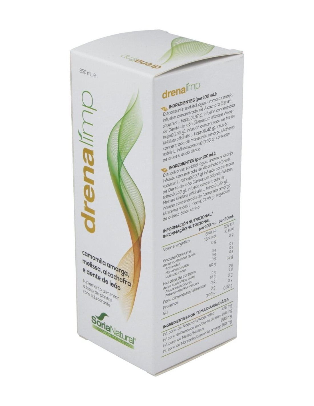 Su composición con plantas naturales medicinales hacen de Soria Natural Drenalimp una bebida drentante y adelgazante. Actúa favoreciendo la eliminación de la sobrecarga de toxinas y evitando que se acumule la grasa.