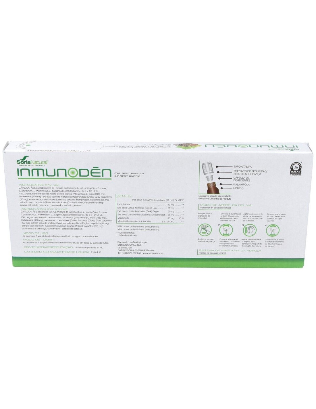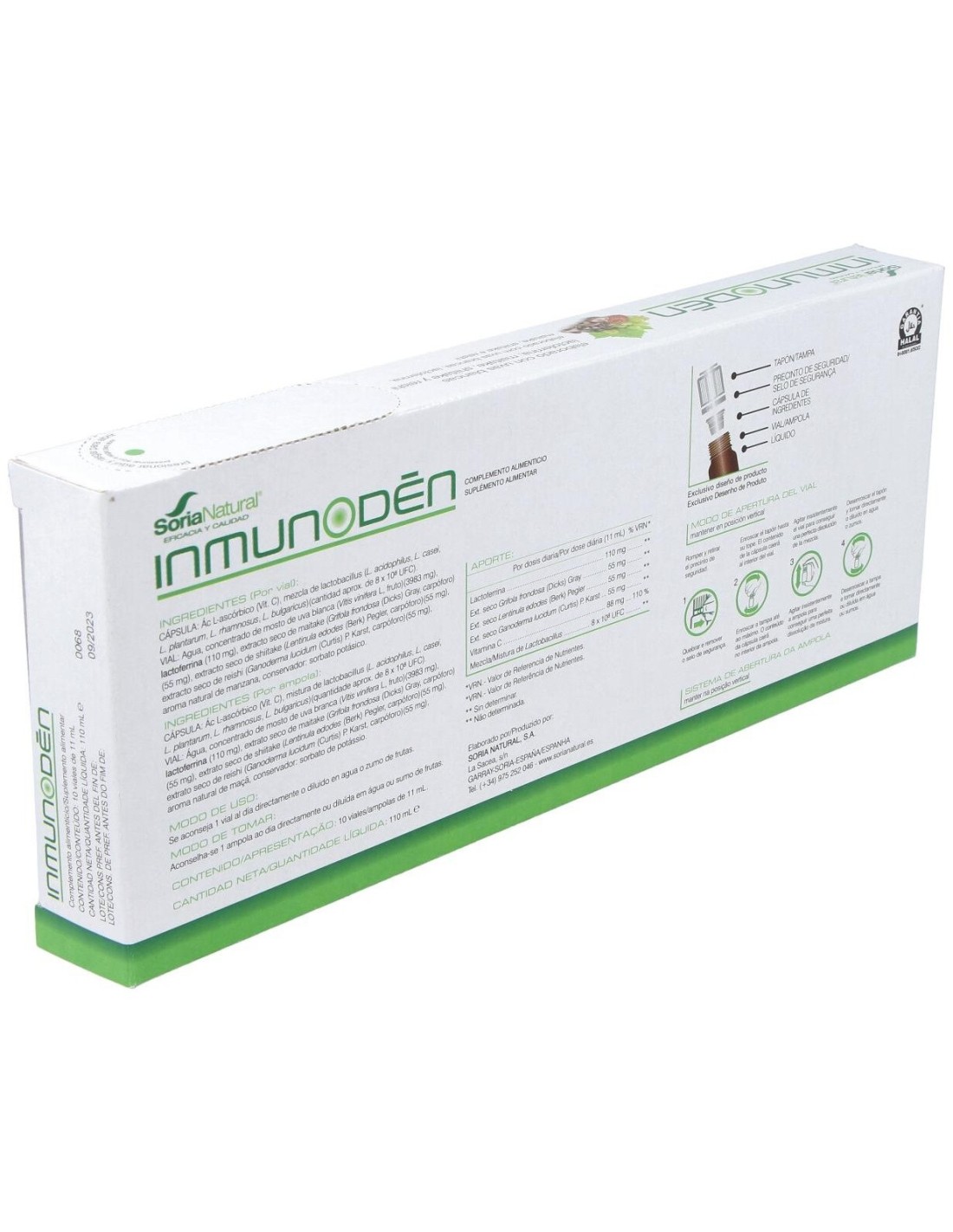Los viales Inmunoden Senior de Soria Natural es un complemento alimenticio que actúa sobre nuestro sistema inmunitario, estimulando las defensas y mejorando el equilibrio de la flora intestinal.