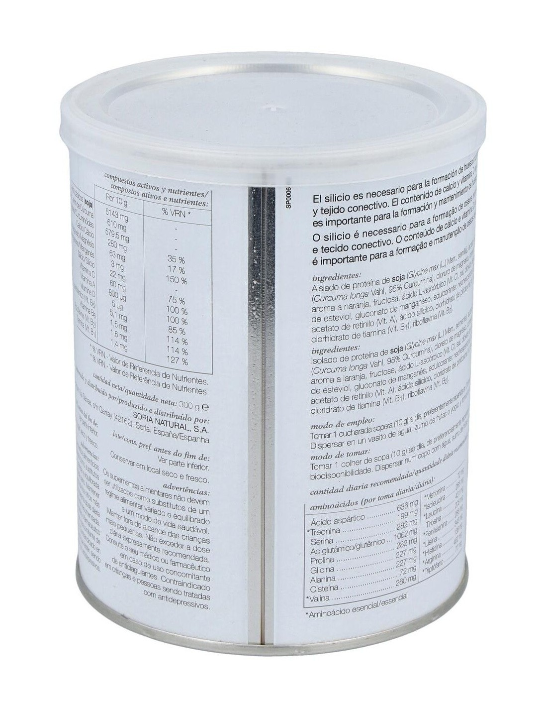 Aminoácidos de origen vegetal (soja), Lactato de calcio, Extracto de Cúrcuma (Curcuma longa L. 95% Curcumina), Cloruro de magnesio, Acidulante (Ácido cítrico), Aroma de naranja, Edulcorante (Acesulfamo de potasio), Vitamina C (Ácido L-ascórbico), Cloruro sódico, Fructosa, Antiaglomerante (Dióxido de silicio), Gluconato de manganeso, Vitamina B5 (D-Pantotenato de calcio), Vitamina A (Acetato de retinol), Ácido silícico, Edulcorante (Neohesperidina DC), Vitamina D (Colecalciferol), Vitamina B6 (Cloridrato de piridoxina), Vitamina B1 (Clorhidrato de tiamina) y vitamina B2 (Riboflavina).
