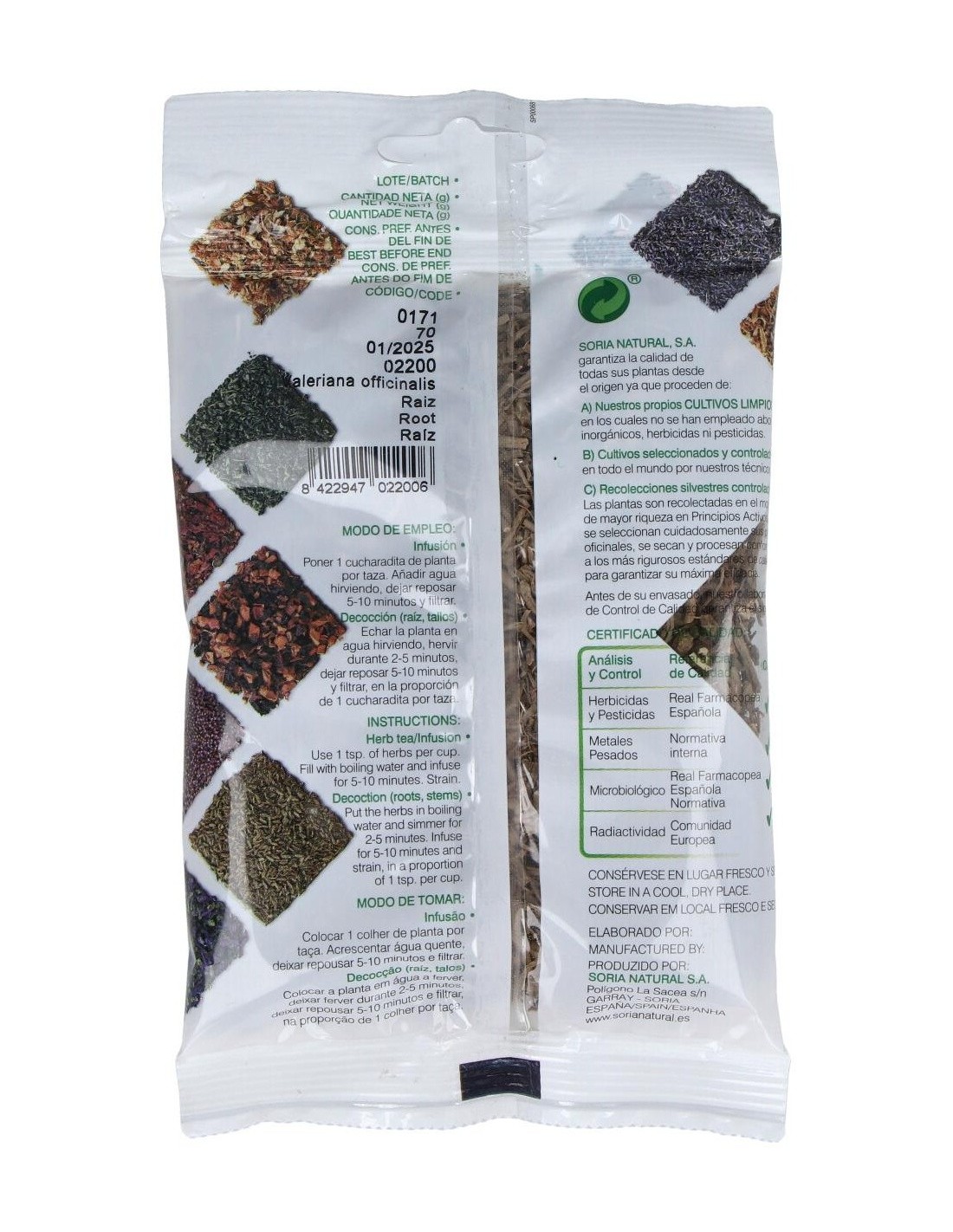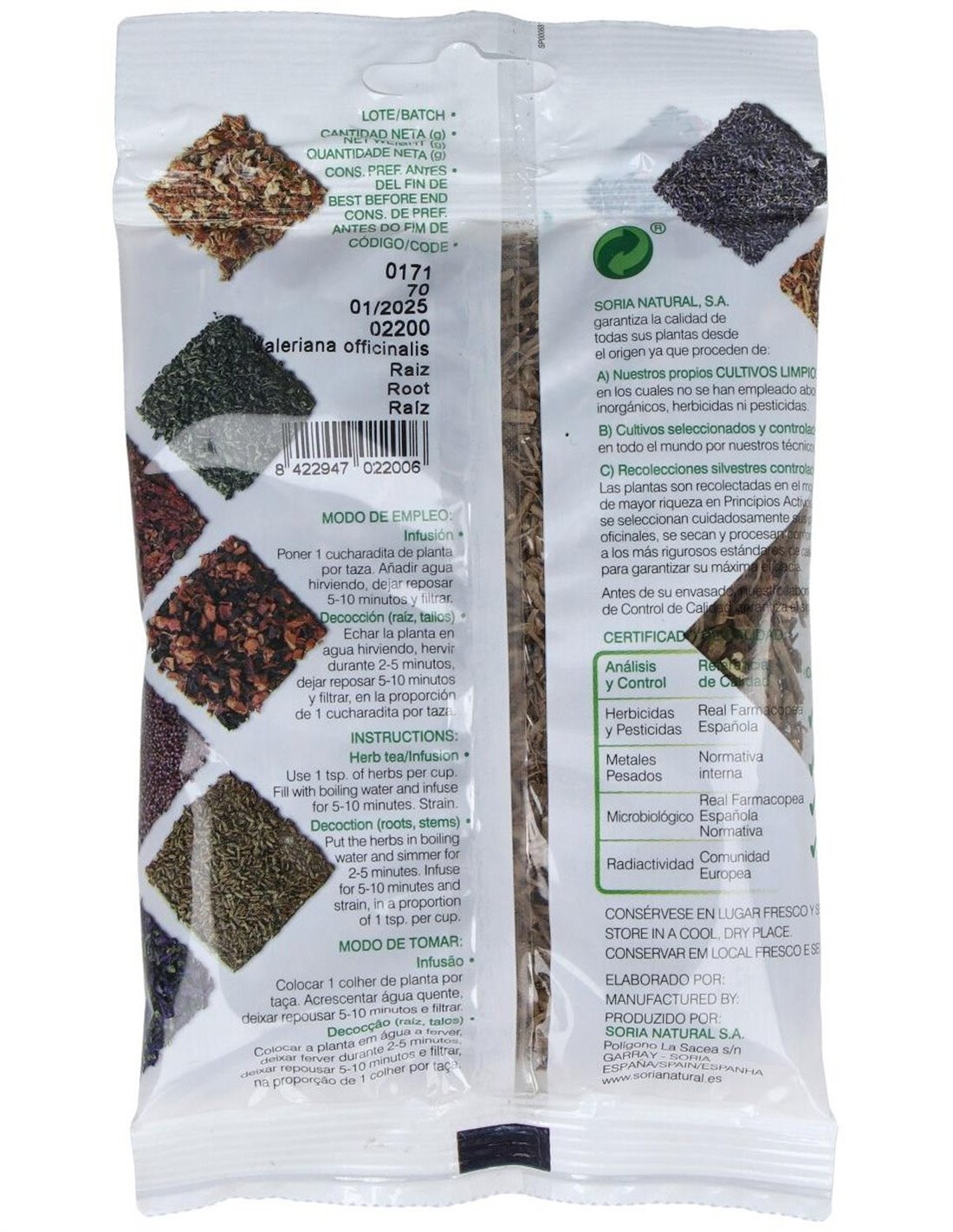 Para mejorar nuestra sensación de bienestar y recuperar la calma, Soria Natural Valeriana Bolsa 70g nos ofrece las propiedades de la raíz de la valeriana, una planta natural que actúa como tranquilizante. Gracias a las propiedades naturales de la valeriana, actúa como sedante, relajando el sistema nervioso y el cerebro, y ayudando a desconectar y descansar cuerpo y mente.