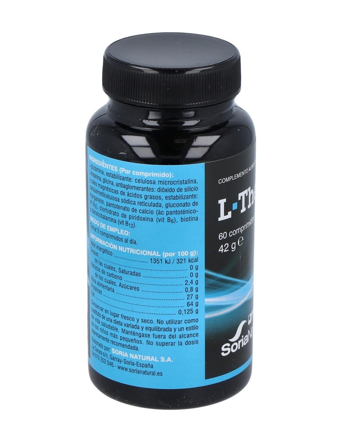 L-Theanina, Ácido gamma aminobutírico, L-glutamina, Clorhidrato de piridoxina, Gluconato de manganeso, Cianocobalamina, Biotina, Pantotenato cálcico, Estabilizador: Celulosa microcristalina, Antiaglomerante: Dióxido de silicio, Disgregante: Croscarmelosa sódica, Sal magnésica de ácidos grasos: Estearato de magnesio.