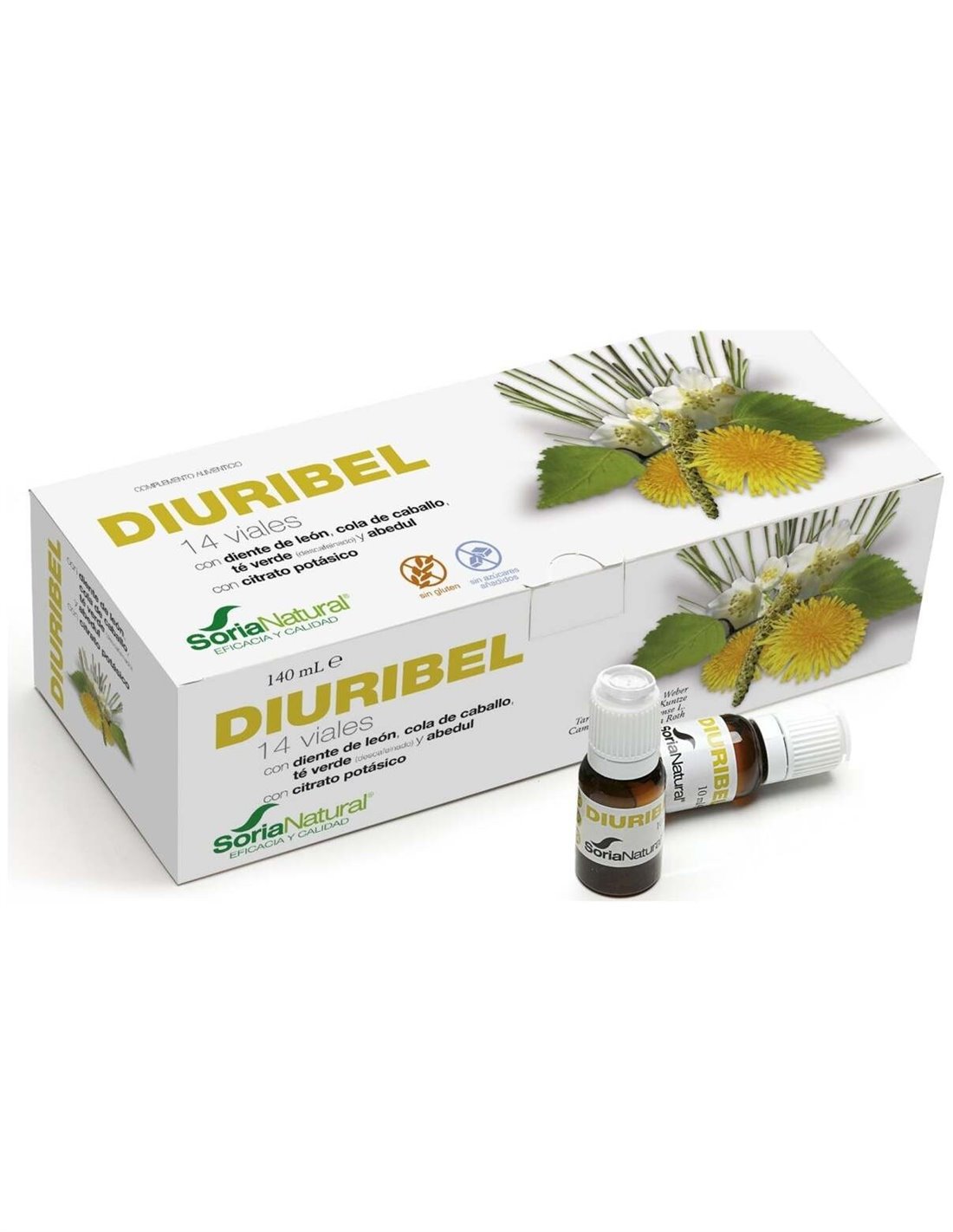 SORIA NATURALViales a base de plantas que ayudan a la eliminación de líquidos como la cola de caballo y el diente de león. El potasio contribuye a mantener el equilibrio hídrico de los tejidos.