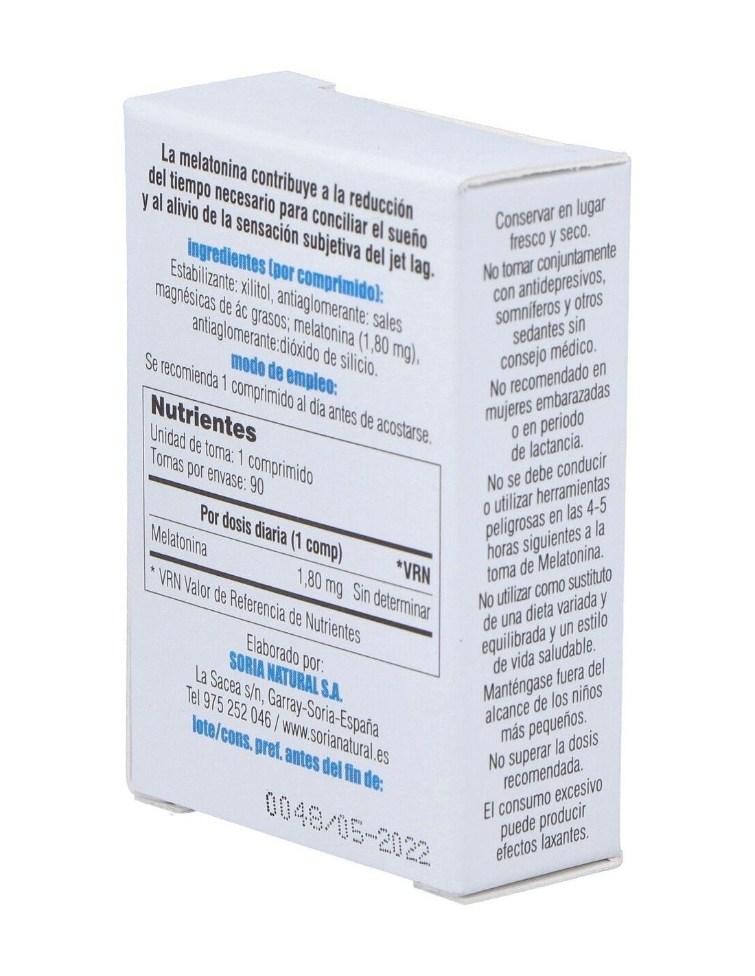 Complemento alimenticio en formato comprimidos y elaborado a base de melatonina 100% pura. La melatonina es una hormona natural que está especialmente indicada para contribuir a regular los ciclos del sueño en casos de viajes largos y jet-lag, insomnio o en personas que trabajan con turnos cambiantes o de noche.