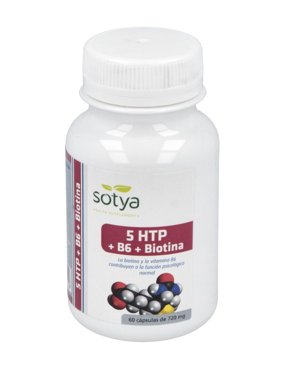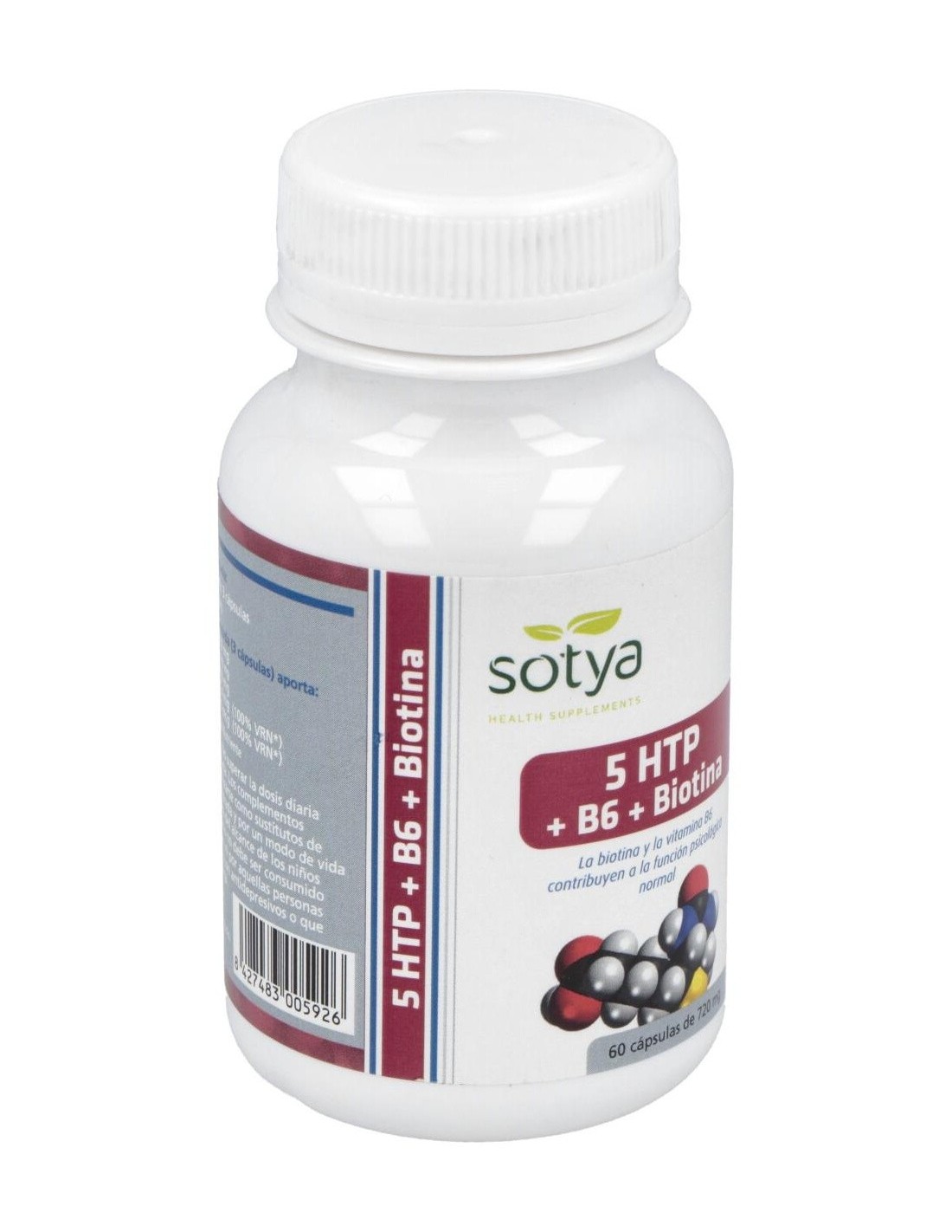 El suplemento 5Htp+B6+Biotina+Mg 650Mg 60 Cápsulas de Sotya ofrece una combinación de nutrientes diseñada para apoyar diversas funciones corporales, facilitando su incorporación en la rutina diaria de cuidado personal.