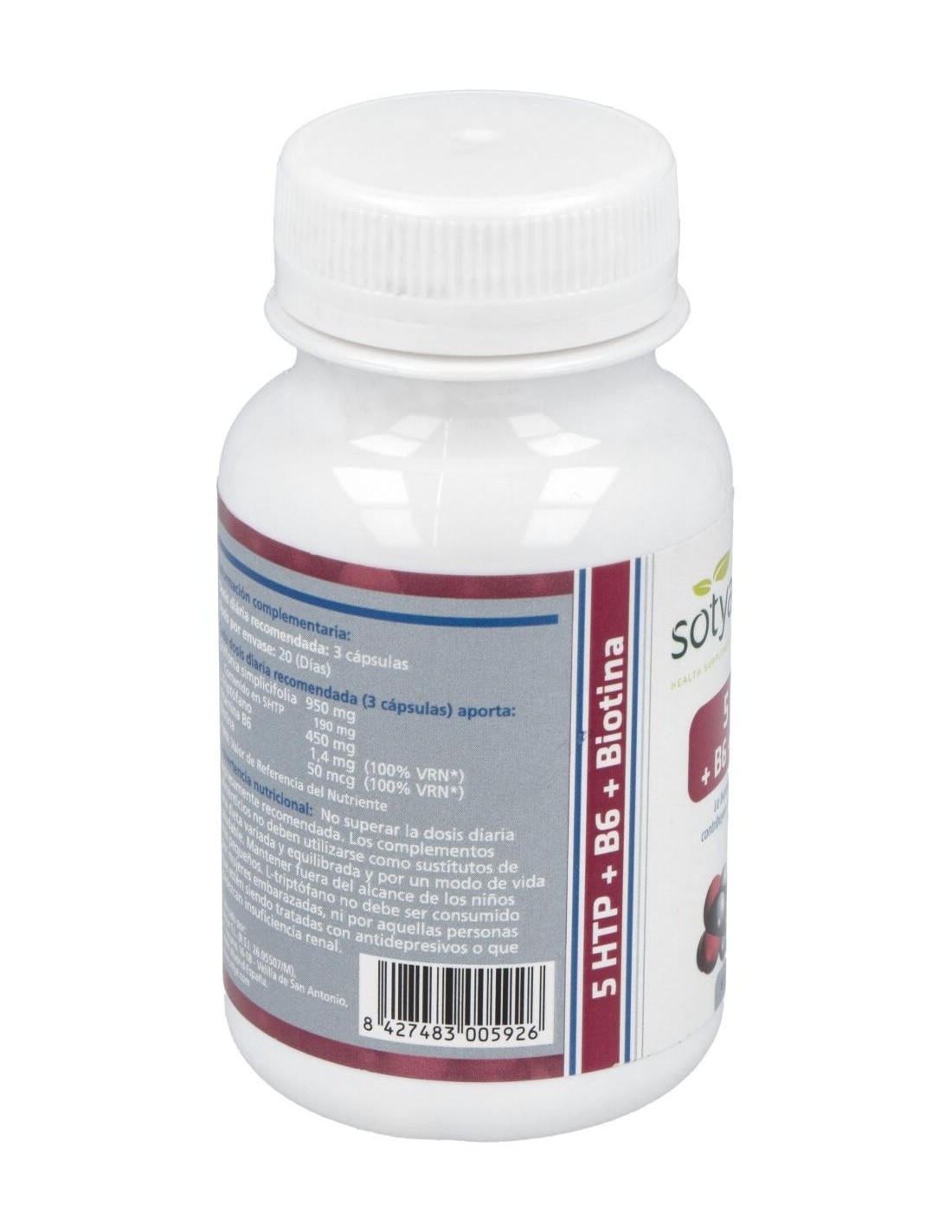 Complemento alimenticio en formato de cápsulas que está especialmente ideado para ayudar a fomentar un normal funcionamiento de diversas funciones orgánicas como son el apetito, el estado de ánimo y el sueño, gracias a su compuesto que está elaborado a base de extracto de grifonia, biotina, vitamina B6 y el 5-hidroxitriptófano o 5-HTP, que es un derivado del triptófano, un aminoácido que se encuentra en alimentos con alto contenido en proteínas como la carne y los productos lácteos.