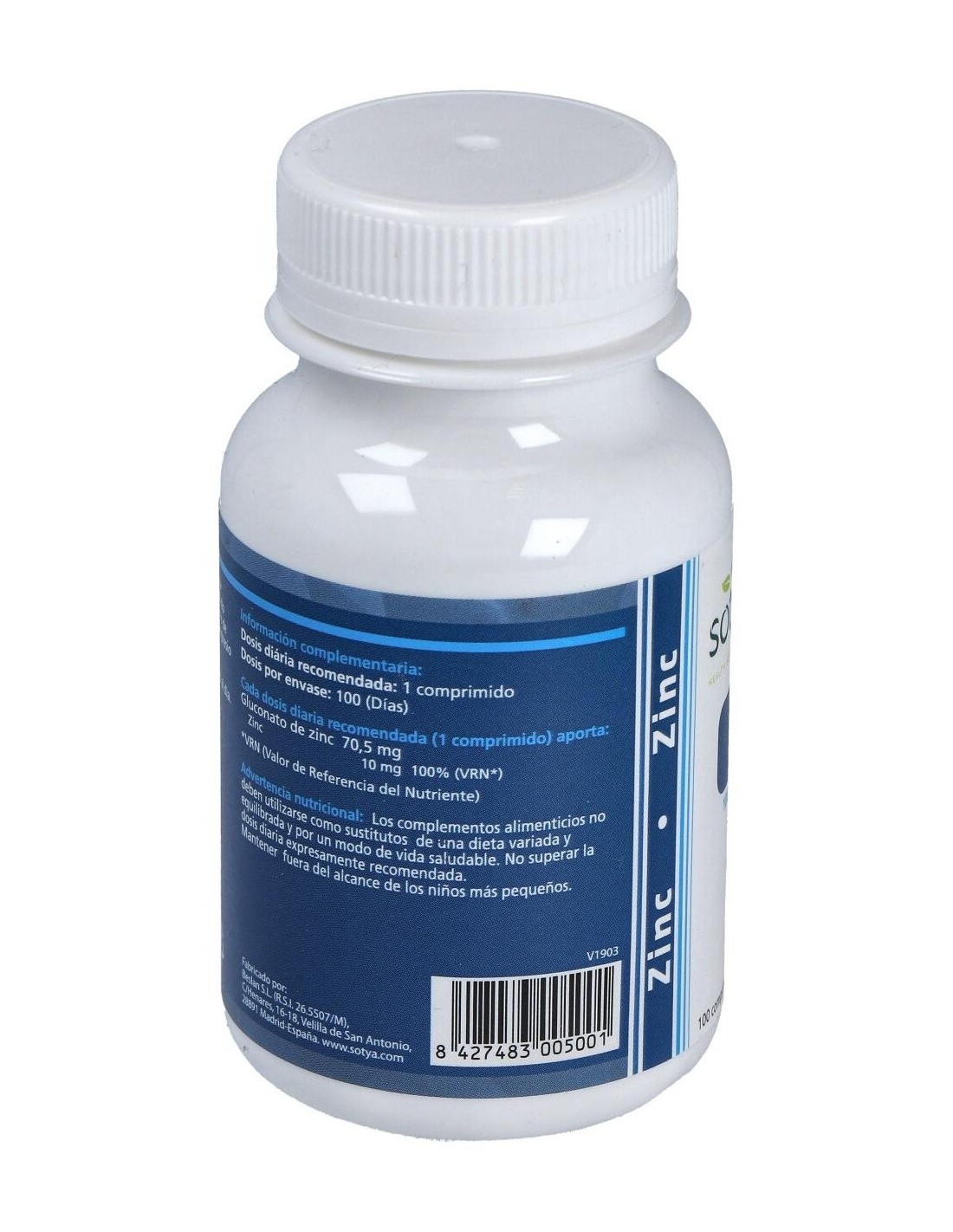 El Zinc 500Mg Comp. 100U de Sotya es un suplemento mineral para personas que buscan apoyar su bienestar general, aportando zinc en una dosis adecuada para contribuir a funciones esenciales del organismo.