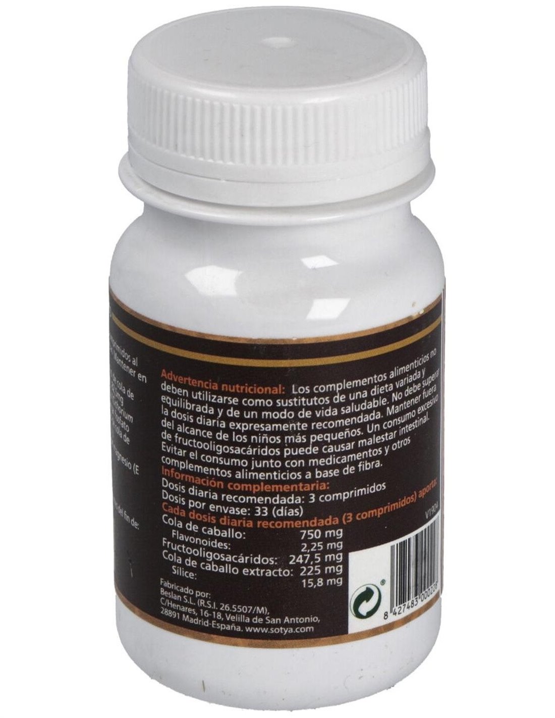 Sotya Cola de Caballo 500mg son unos comprimidos que te aportarán todos los beneficios de la cola de caballo de forma fácil y muy cómoda de consumir. La cola de caballo tiene propiedades diuréticas que te ayudarán en caso de retención de líquidos ya que aumenta la cantidad de orina, con lo que se consigue limpiar el tracto urinario y ayuda en los trasotrnos urinarios leves.