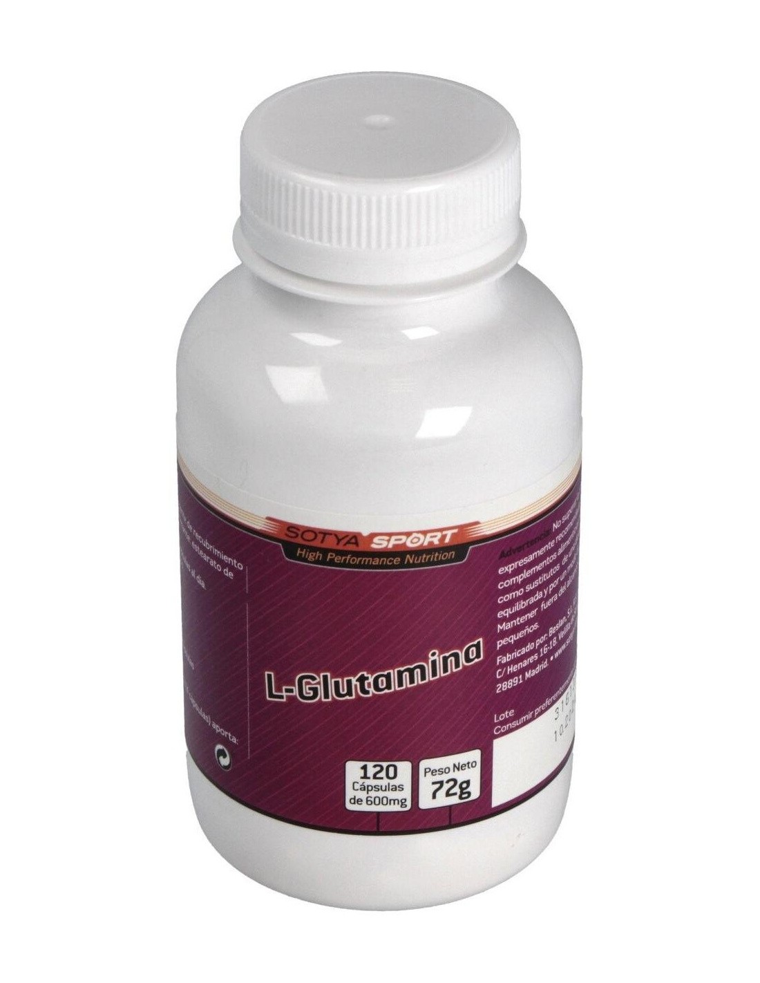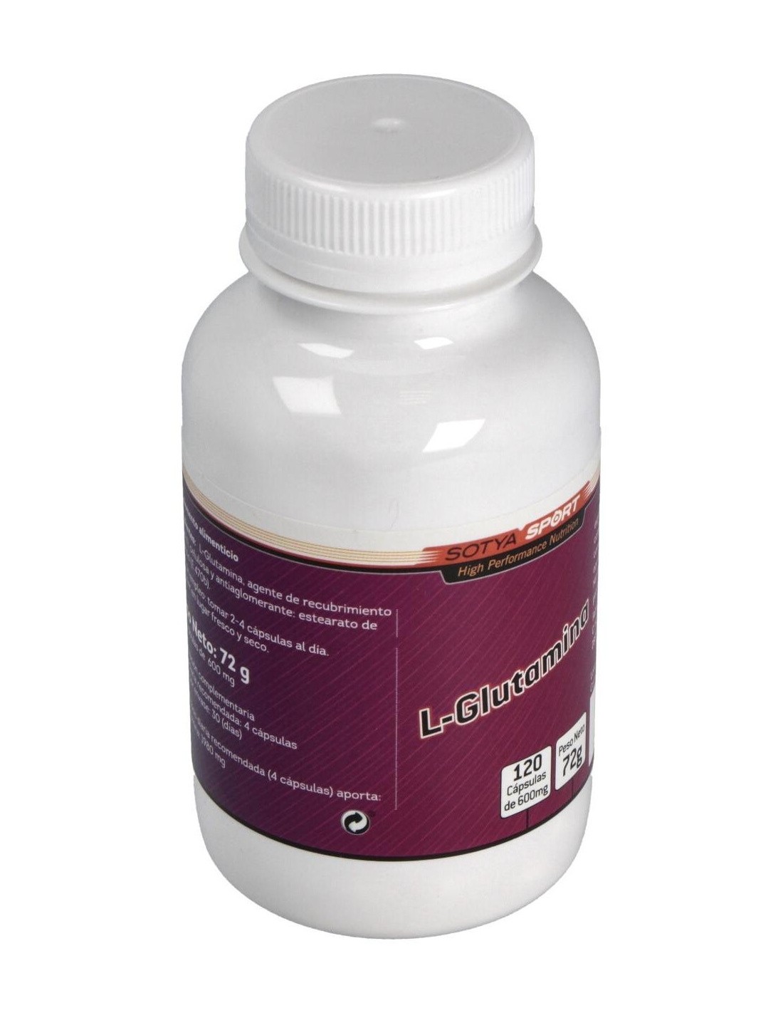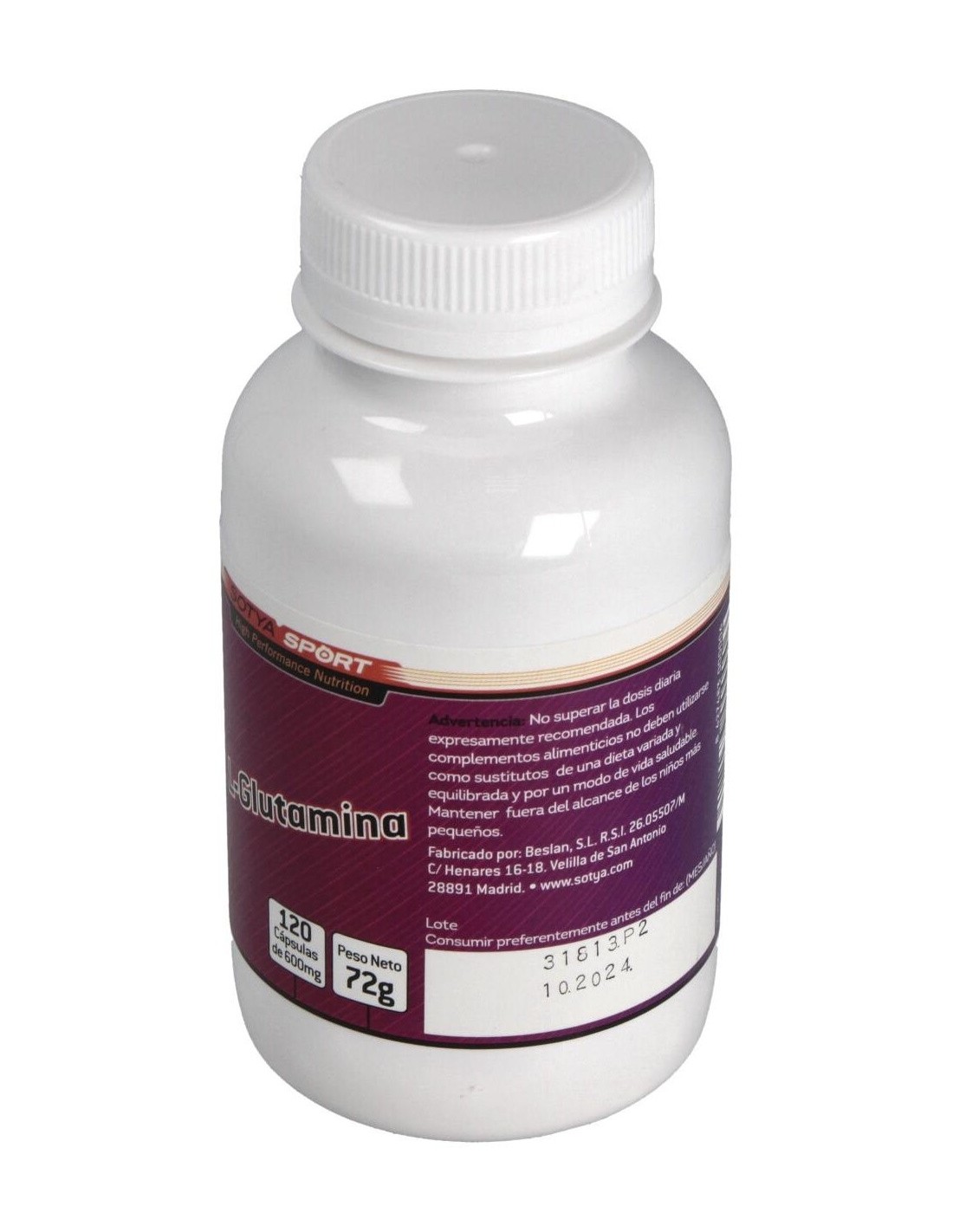 SOTYAEl L- Glutamina 600Mg Cáps. 120U de Sotya es un suplemento nutricional para personas activas que apoya la recuperación muscular y el mantenimiento del sistema inmunológico mediante una fórmula concentrada de glutamina.