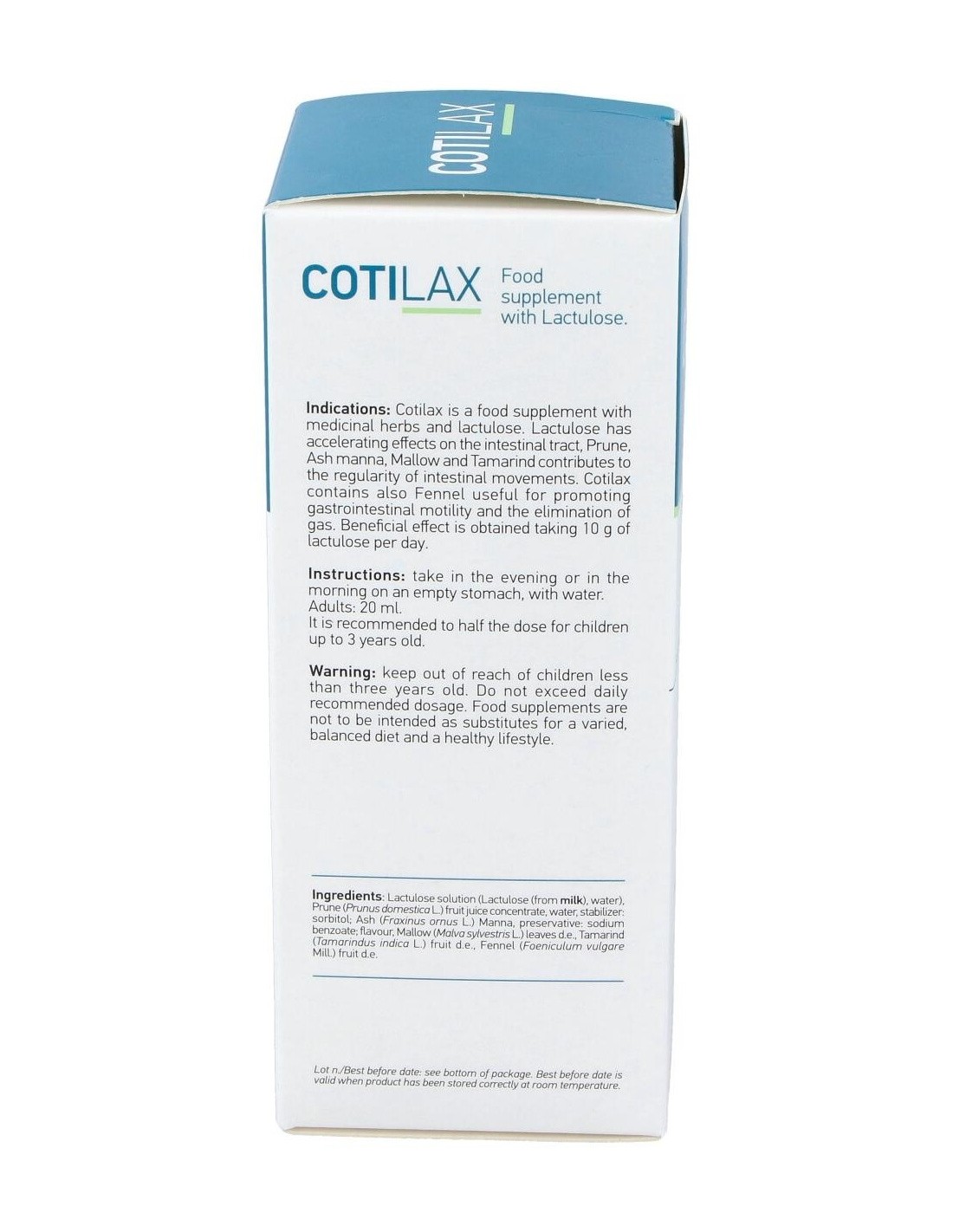 Solución de lactulosa (Lactulosa (de la leche ), agua), Ciruela (Prunus domesticaL.) jugo de fruta concentrado: Fresno (Fraxinus ornus L.) Maná, Malva (Malva sylvestris L.) hojas de, Tamarindo (Tamarindus indica L.) fruto de, Hinojo (Foeniculum vulgare Mill.) fruto de.