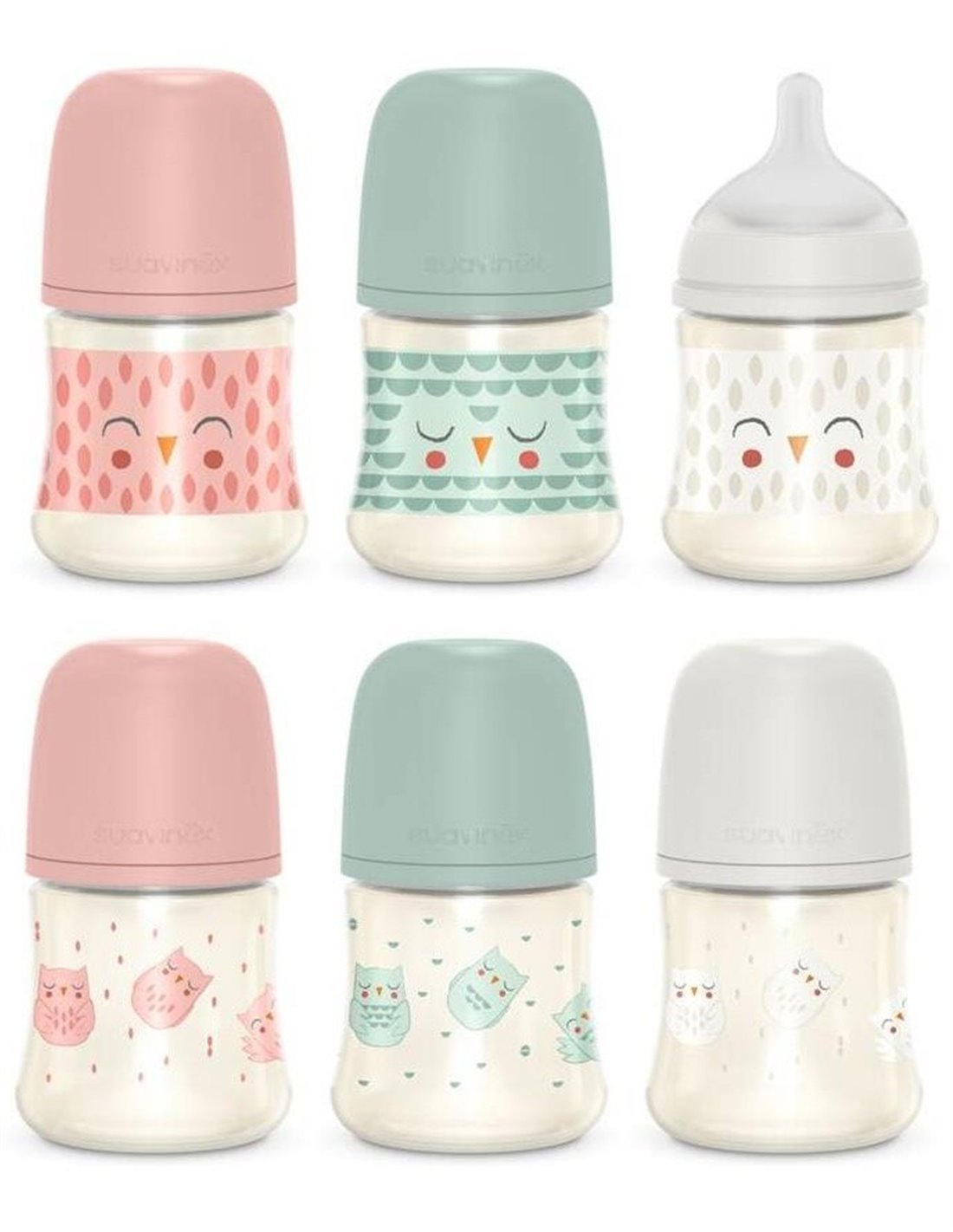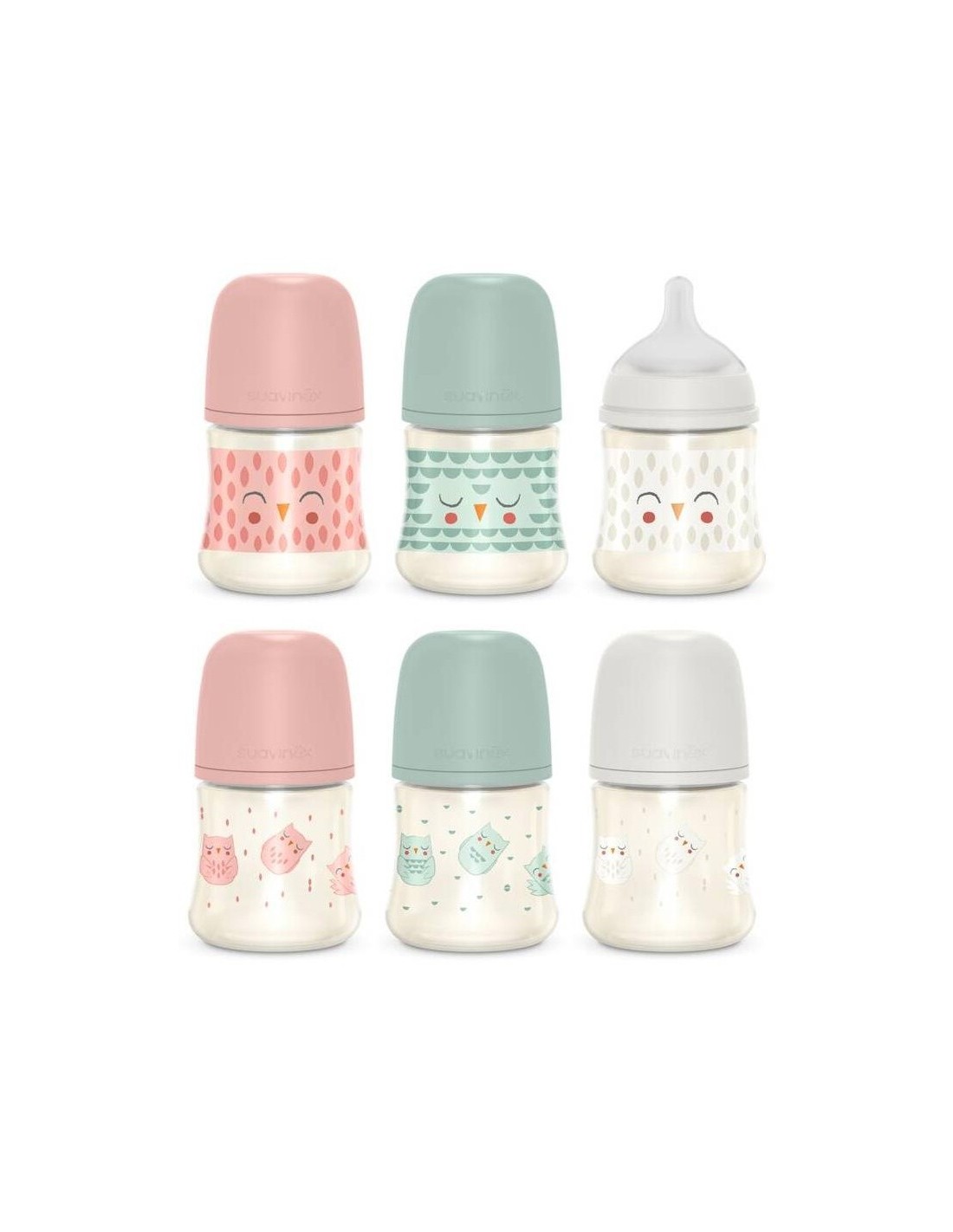 SUAVINEXBiberones premium de poliamida con tetina redonda tres posiciones de silicona con capacidad de 150ml. La tetina redonda 3 posiciones, se adapta a la necesidad del bebé y al tipo de alimento ya que, tan sólo girando el biberón, permite regular la intensidad de la salida de líquido, garantizando una correcta succión desde el primer día.