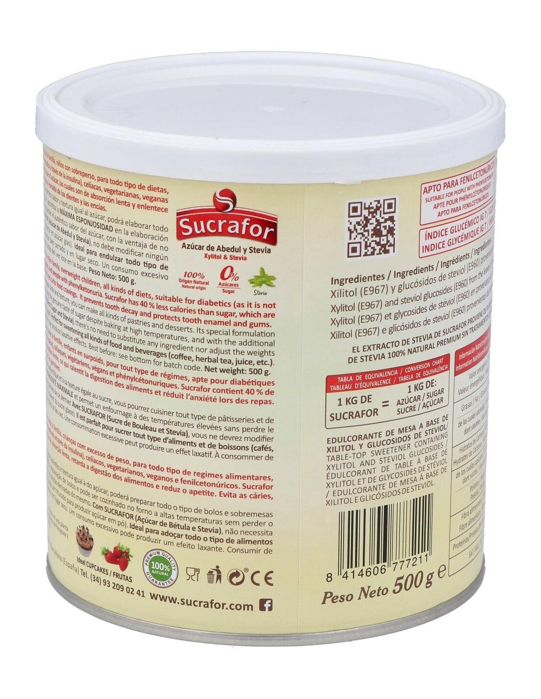 SUCRAFORIdeal para toda la familia y dietas de control de peso. Apto para personas con diabetes e ideal para una vida sana. Evita las caries y protege el esmalte de los dientes y las encías.