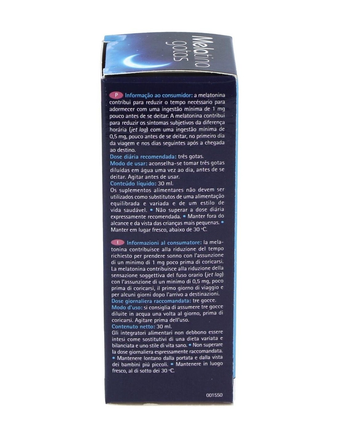Es un complemento alimenticio a base de melatonina, indicado para inducir el cuerpo al descanso. Apto para reducir el tiempo necesario para conciliar el sueño. La dosis es de 1 mg de melatonina justo antes de acostarse. La melatonina es una hormona producida por la glándula pineal que tiene diversas funciones en el cuerpo y especialmente en la regulación del ciclo sueño vigilia.