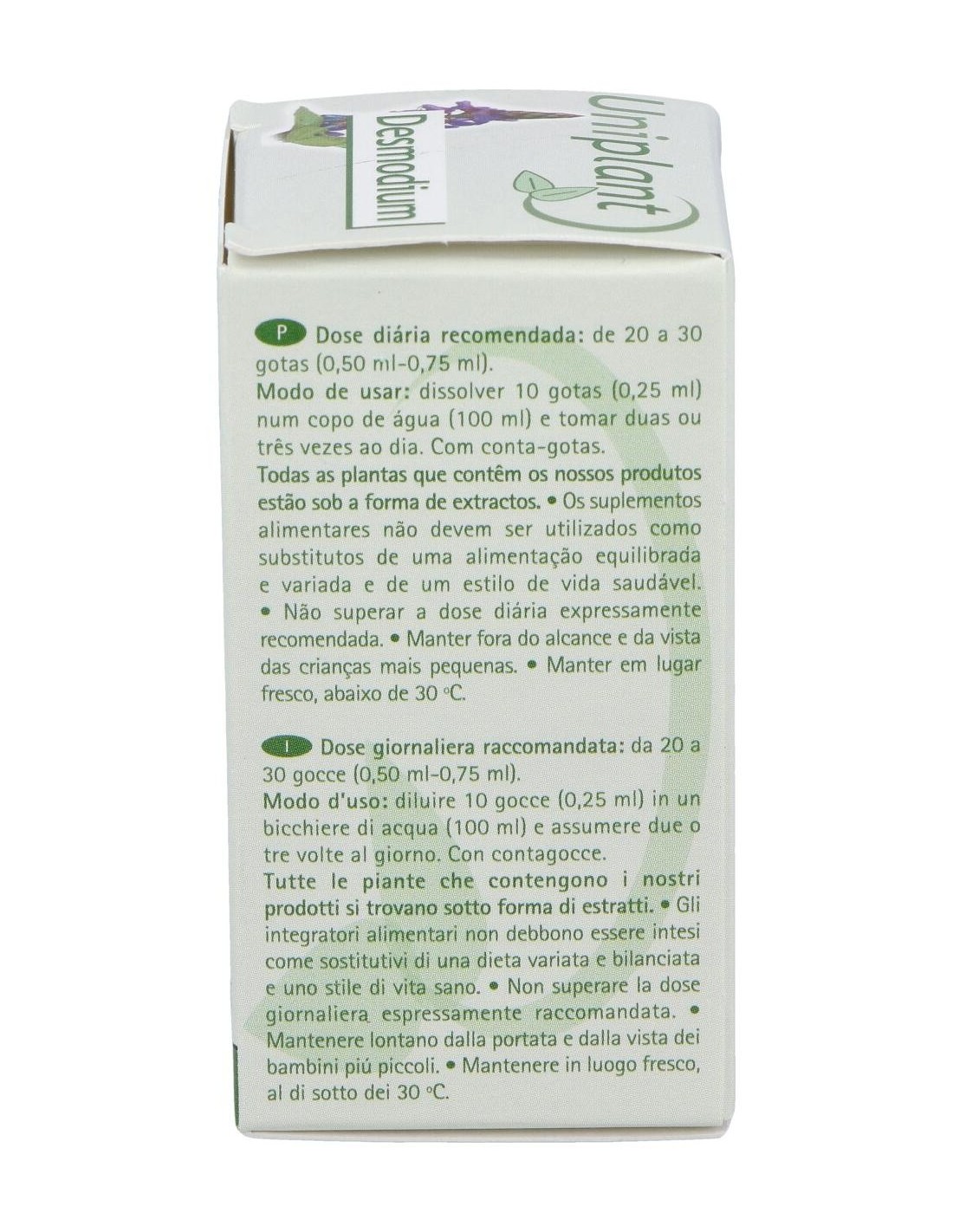 Uniplant Desmodium 30 Ml. de Tegor es un complemento natural diseñado para personas que buscan apoyar su bienestar diario mediante ingredientes de origen vegetal. Este producto está formulado para integrarse fácilmente en rutinas de cuidado personal, ofreciendo una opción práctica y versátil.