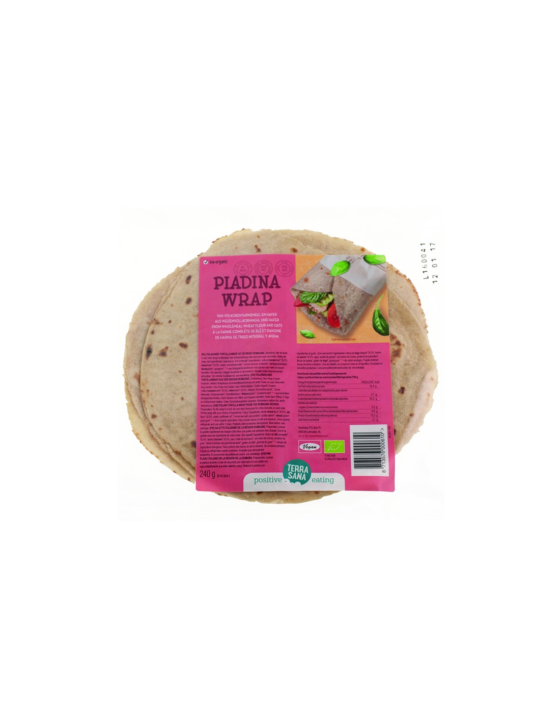Pack 6 Uds. Piadina Wrap de Harina de Trigo Integral y Avena de Terrasana