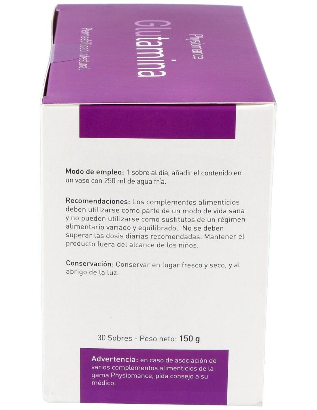 Physiomance Glutamina 30 Sobres es un complemento alimenticio que ayuda a fortalecer las células de la pared intestinal debilitadas a causa de patologías, como colon irritable, o el estrés.Está indicado para adultos que necesitan restablecer su flora intestinal o padecen úlceras tópicas. Además, también funciona como protector del sistema inmunitario.