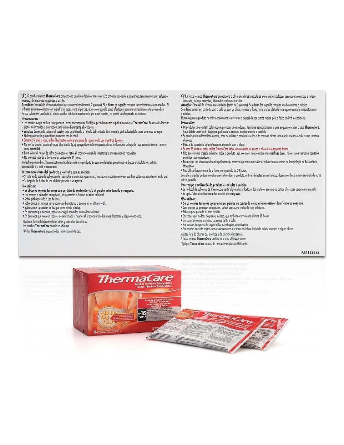 ThermaCare® lumbar y cadera es adecuado para el tratamiento de las molestias y los dolores musculares y articulares, así como para la tensión muscular en la región lumbar. Los parches, cómodos de utilizar y con 16 células de calor patentadas, son ajustables en tamaño gracias a la banda de material elástico y cierre de velcro. Proporciona alivio prolongaodo durante 16 horas. Esto es, 8 horas mientras se lleva puesto y 8 horas adicionales después de quitárselo.