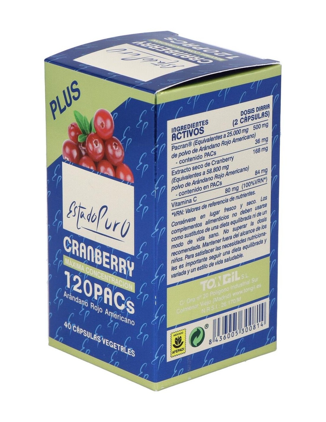 Cranberry 120 Pacs 40Cap. Estado Puro de Tongil