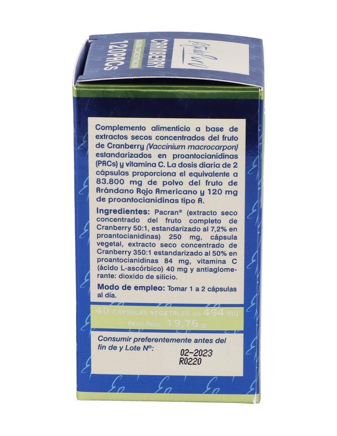 Pacran® (equivalentes a 12.500 mg de polvo de arándano rojo)..........250 mg
