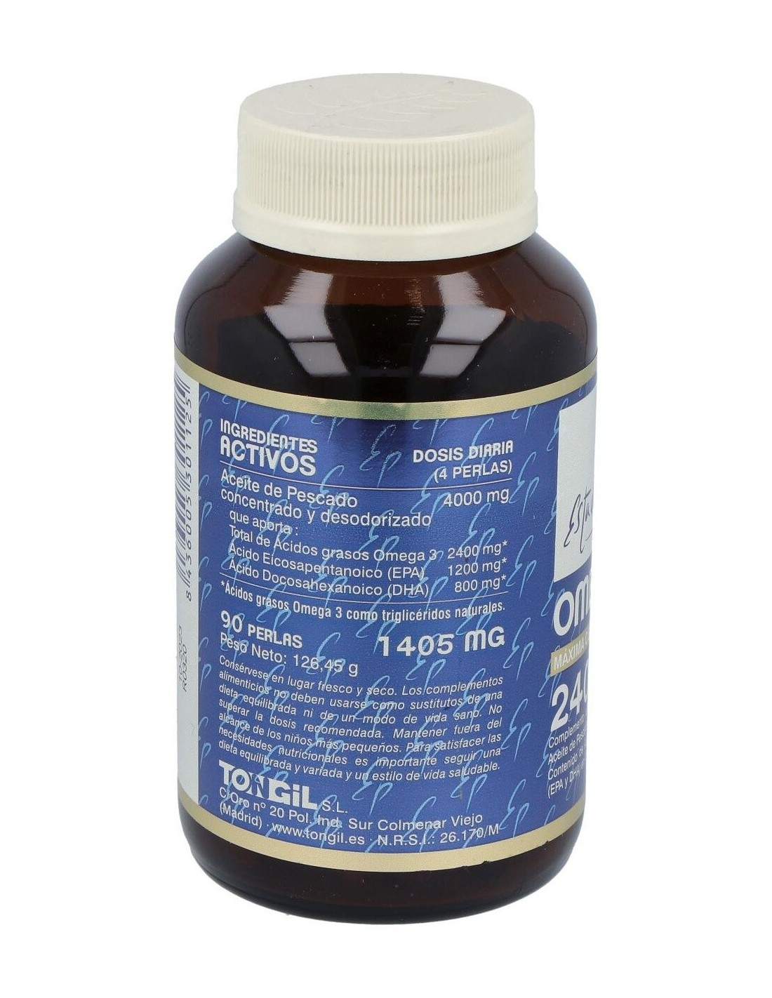 Tongil Estado Puro Omega 3 2400 Tg 90perlas es un complemento alimenticio a base de aceite de pescado procedente de aguas frías que contiene ácidos DHA y EPA.