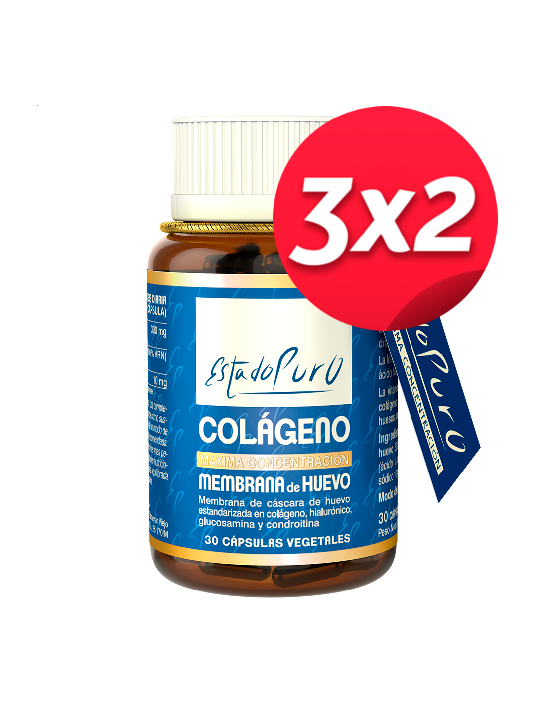 Pack 3x2 Colageno Pura Membrana De Huevo 30Cap. Estado Puro