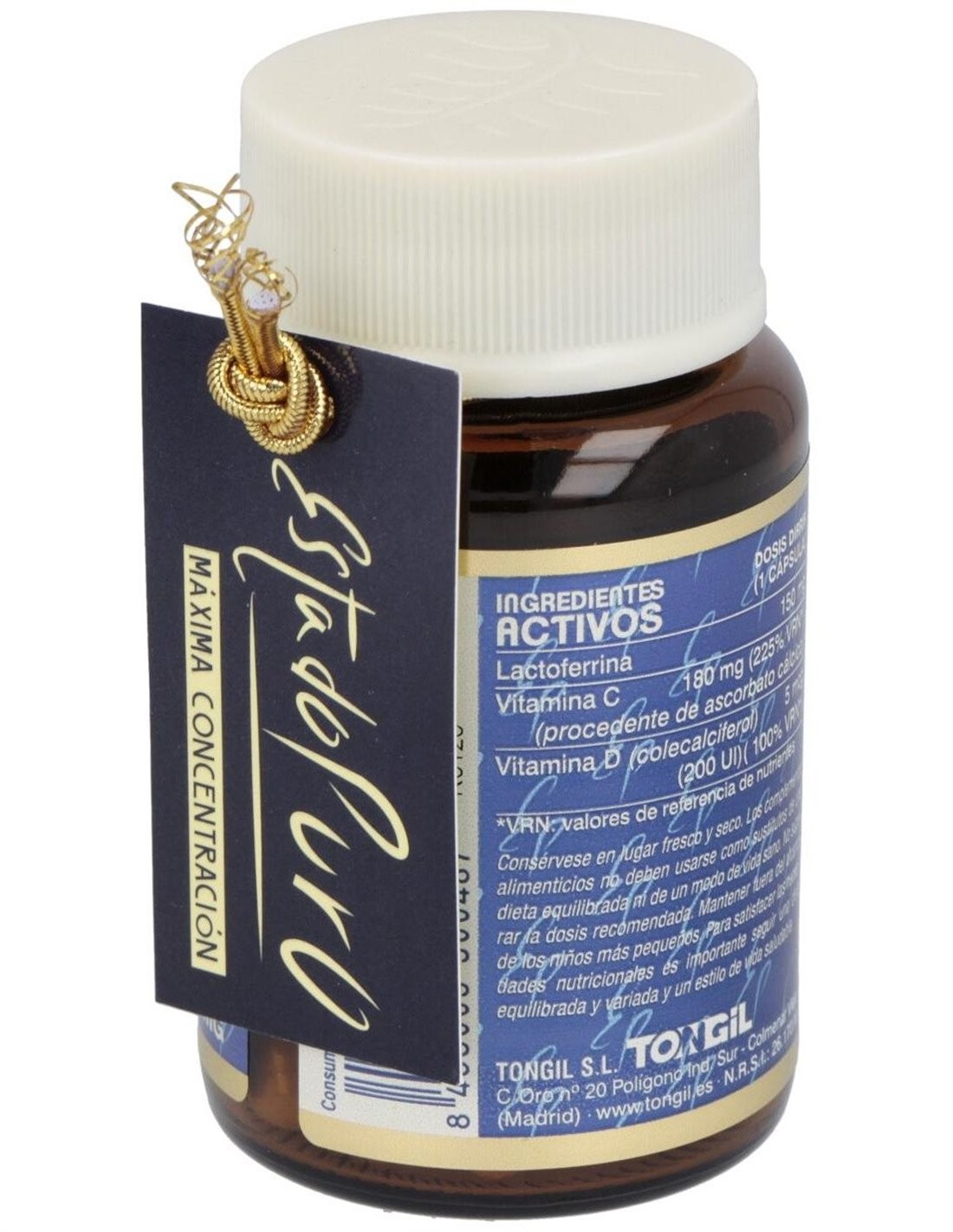 Cápsula vegetal (hidroxipropilmetilcelulosa), maltodextrina, estabilizantes (octenilsuccinato sódico de almidón y goma arábiga), antioxidante (alfatocoferol, ascorbato de sodio, fosfato de calcio dihidrogenado y aceite vegetal).
