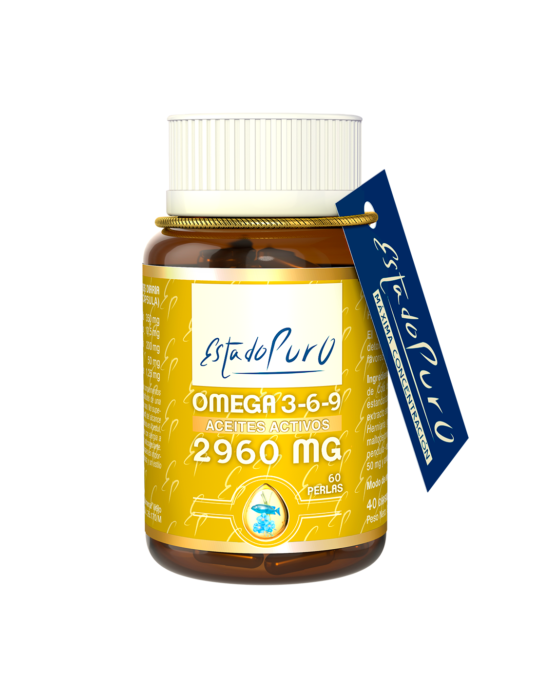Suplemento a base de ácidos grasos omega 3 procedentes de aceite de pescado, omega 6 procedentes de semillas de Borraja, Omega 9 procedentes de semillas de Lino y vitamina E.