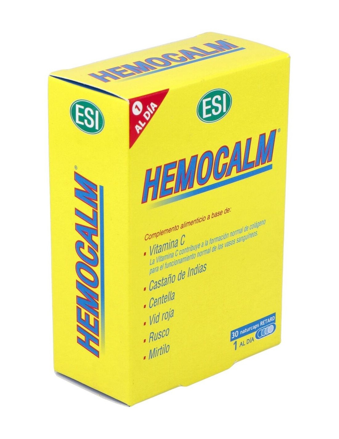 Suplemento a base de vitamina C con castaño de Indias, centella, mirtilo, vid roja y rusco. La vitamina C contribuye a la formación normal de colágeno para el funcionamiento normal de los vasos sanguíneos.