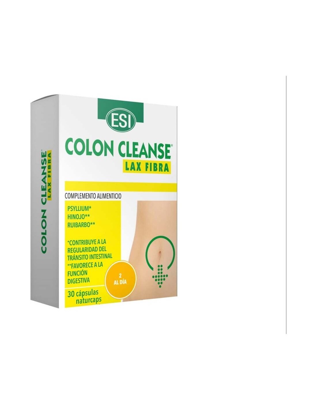 Esi Colon Cleanse Lax Fibra es un suplemento dietético 100% natural elaborado a base de Psyllium (Plantago ovata Fosk) y plantas pulverizadas. Favorece el correcto funcionamiento del tránsito intestinal, funcionando como emoliente y protector de la mucosa intestinal.