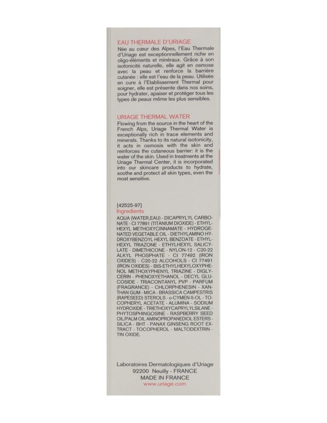 URIAGECrema suave que complementa perfectamente los tratamientos y el acabado del maquillaje. Sin ningún tipo de grasa, garantiza una aplicación rápida,perfectamente invisible. Disimula las rojeces, uniformiza e ilumina la tez y la protege de los rayos UV gracias a su SPF30. Desde el primer momento de su aplicación, aporta una sensación inmediata de bienestar y deja la piel suave, perfectamente hidratada y aliviada.
