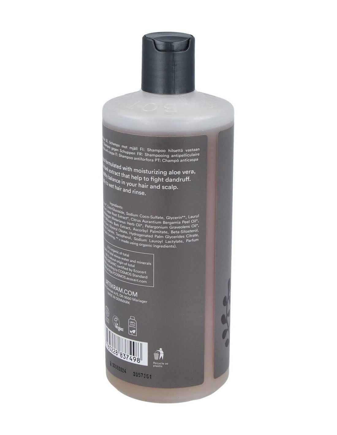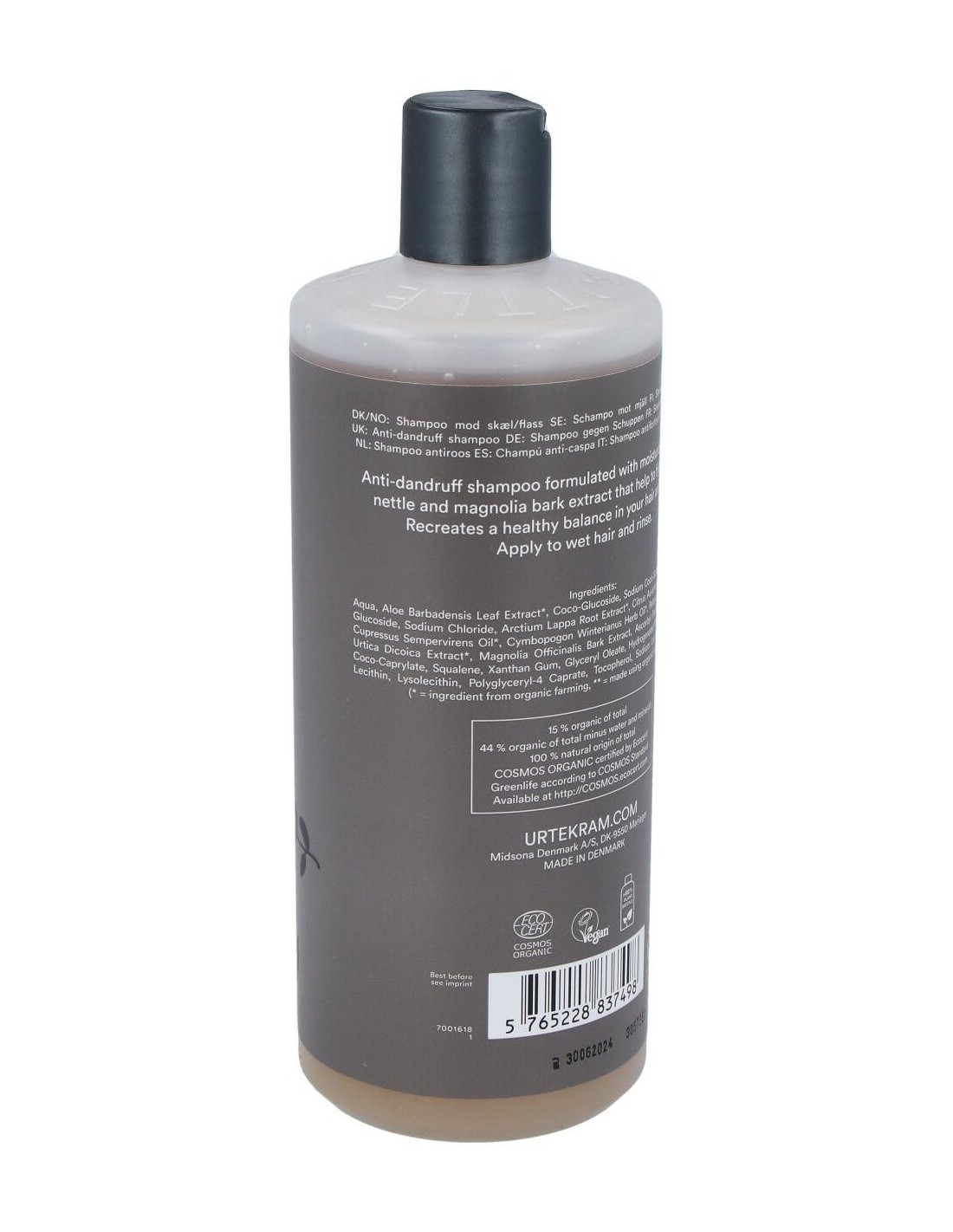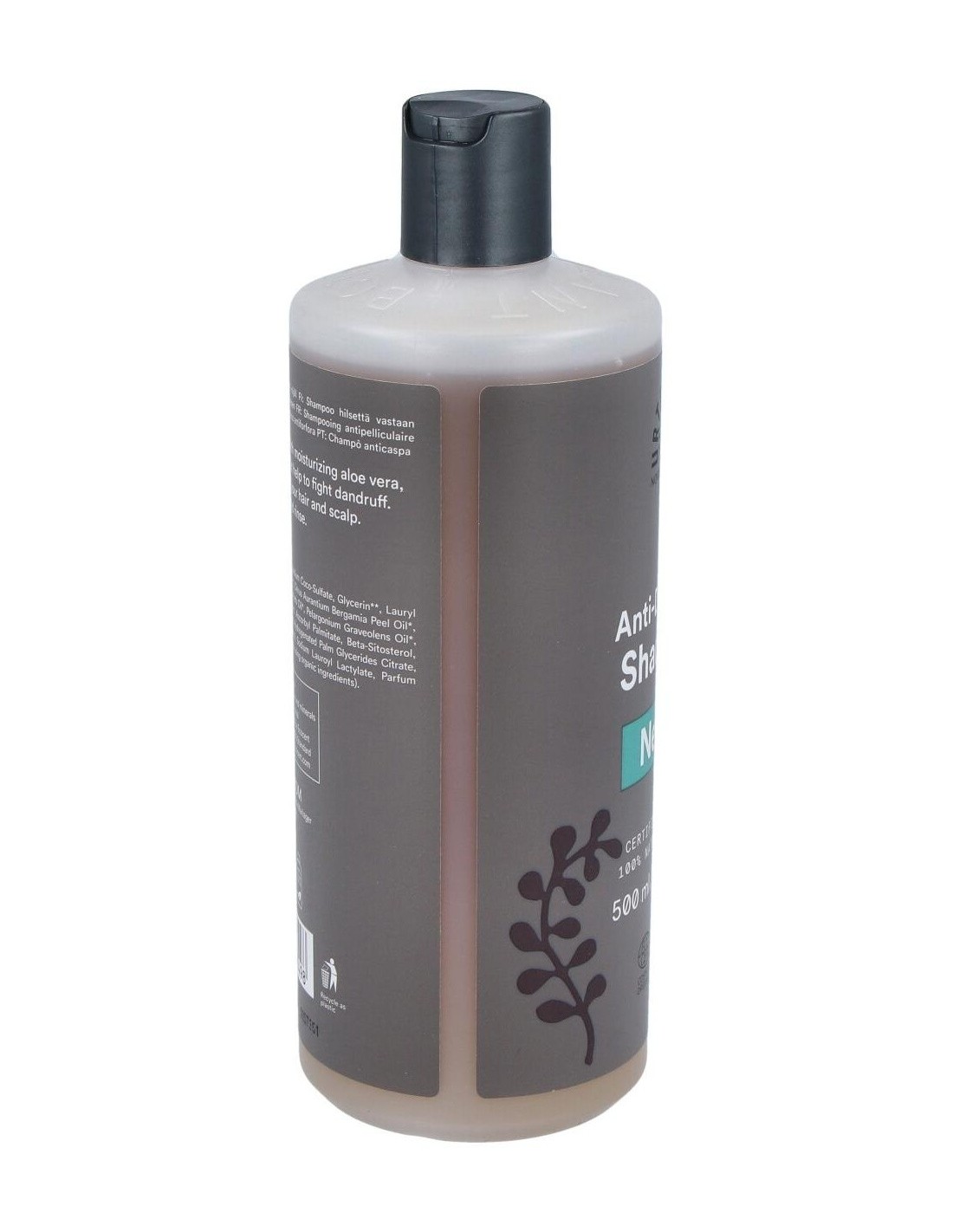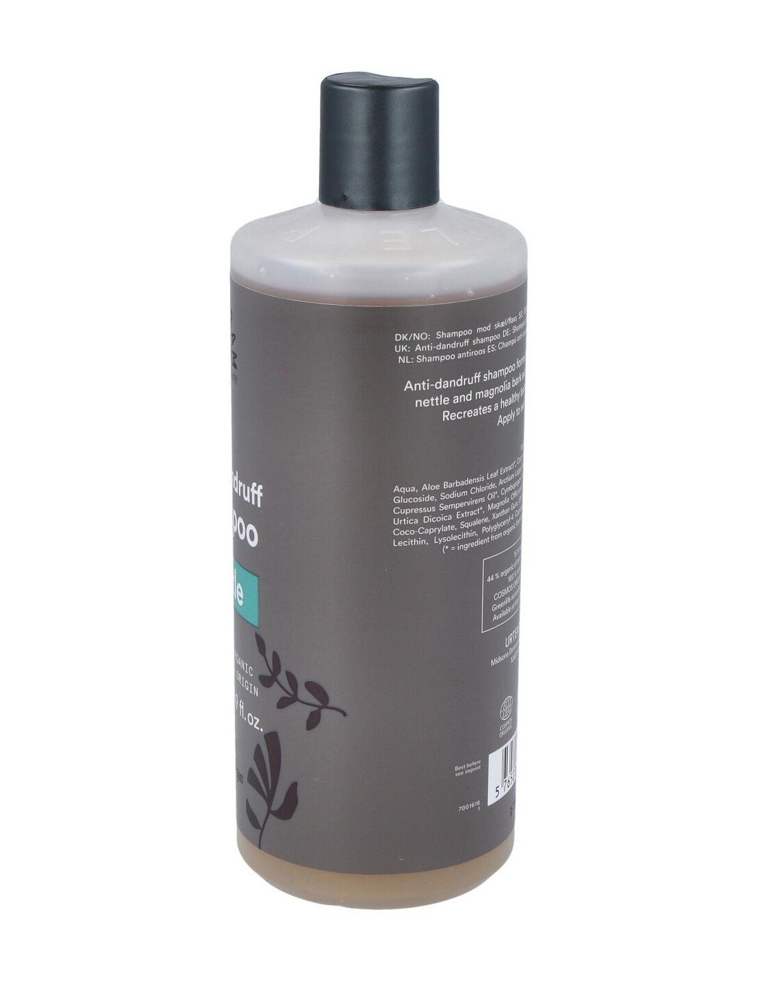 Champú de ortiga anticaspa. Utilizada durante miles de años en la medicina tradicional de las plantas, el extracto de ortiga junto con un cóctel de principios vegetales dan nueva vida al cabello. Extracto de bardana, aceites de ciprés, de geranio rosa, de bergamota y de citronela actúan junto con el aloe vera en este champú. Con agentes limpiadores tensioactivos suaves de origen vegetal que limpian eficazmente. COSMOS ORGANIC certificado por Ecocert Greenlife. Vegano. No testado con animales.
