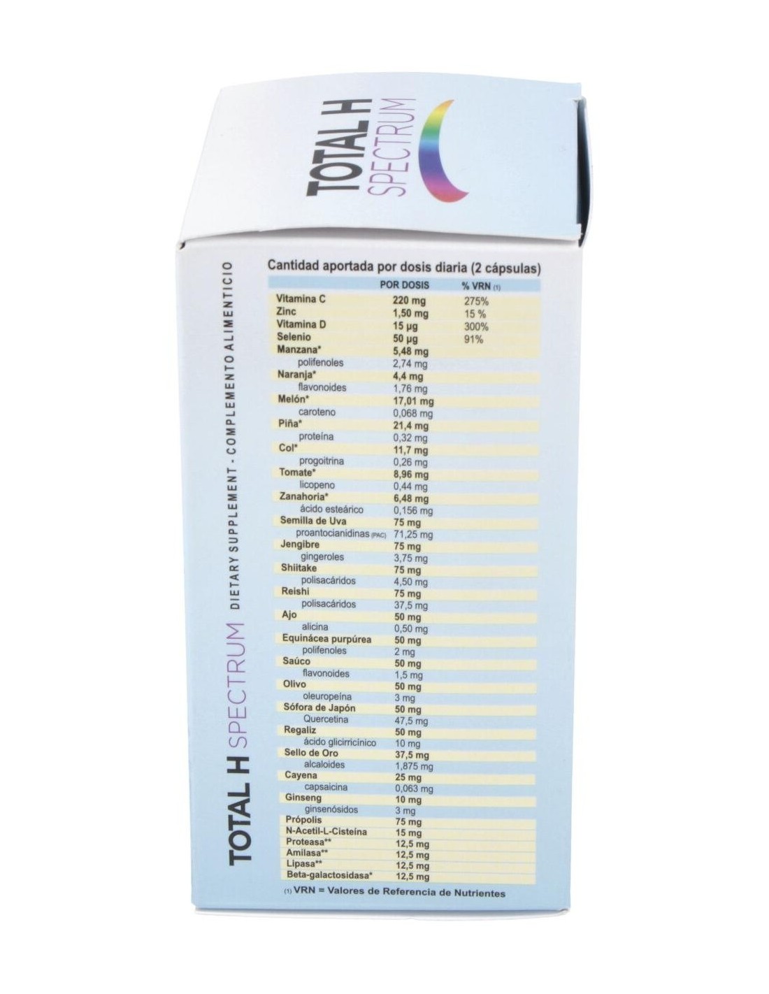 Oxxynea (50 mg), Vitamina C (50 mg), Ascorbato cálcico (75 mg), Semilla de uva (37,5 mg), Zinc (3,75 mg), Seleniometionina (5 mg), Vitamina D3 (25 microgramo), Potasio (5 mg), Propóleo (37,5 mg), Extracto seco de Jengibre (37,5 mg), Echinacea angustifolia (60 mg), Saúco (25 mg), Olivo (25 mg), Shiitake (37,5 mg), Reishi (37,5 mg), Ginseng (5 mg), Regaliz (25 mg), Sello de Oro (18,75 mg), N.Acetilcisteína (7,5 mg), Cayena (12,5 mg), Quercetina (25 mg), Digezyme (25 mg)
