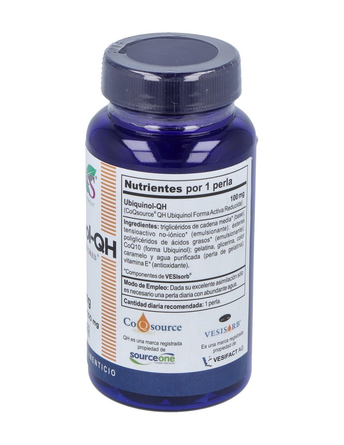 Ubiquinol coenzima Q10 activada (CoQsource®-QH): perla de gelatina (emulsionante: gelatina, glicerina: color: caramelo): triglicéridos de cadena media: emulsionantes: tensioactivo no-iónico, ésteres de poliglicero.