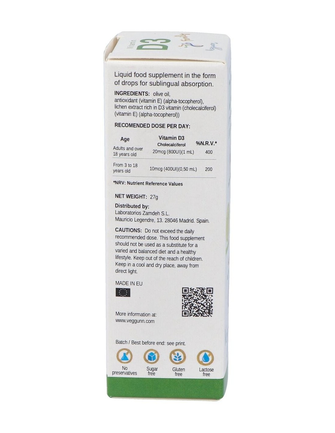 Veggunn Vitamina D3 es ideal para ayudar a alcanzar los niveles adecuados de vitamina D3 que necesita nuestro cuerpo y que los brinda el sol, pero que no siempre se pueden obtener y la falta de ellos puede ocasionar problemas de salud.