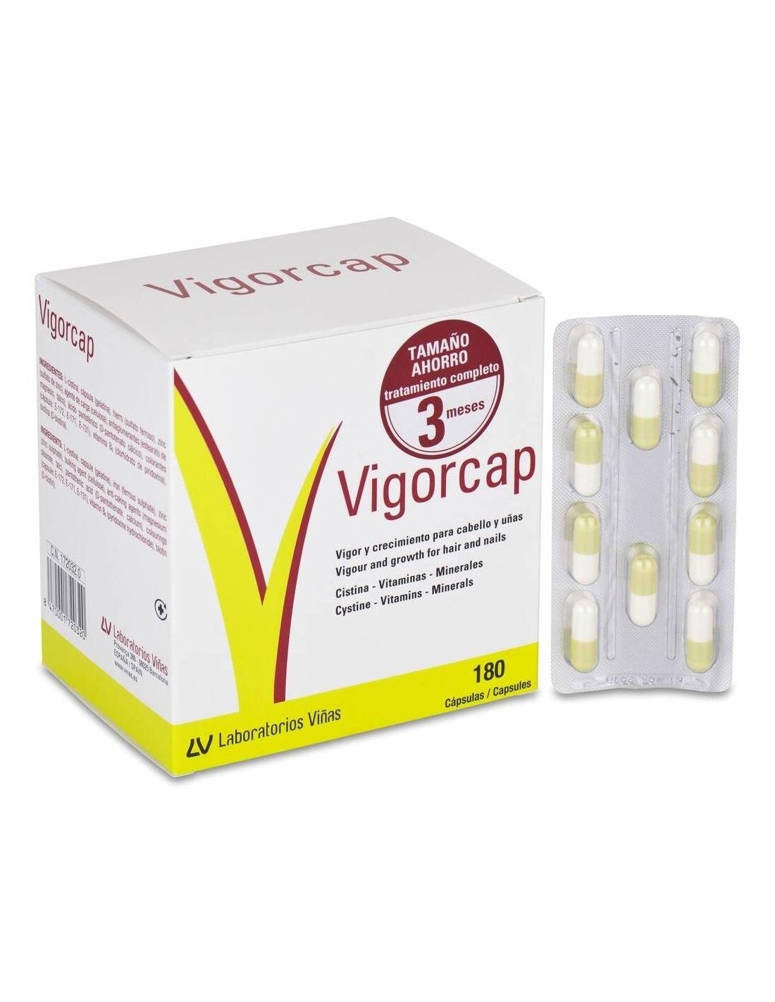 VIÑASVigorcap es un complemento alimenticio con una combinación equilibrada de elementos nutritivos para la nutrición de cabellos y uñas. Contiene L-cistina, zinc, hierro, ácido pantoténico, vitamina B6 y biotina. Una ingesta adecuada de zinc es uno de los factores que ayudan a mantener el cabello y las uñas en óptimas condiciones. La biotina es una vitamina cuyo aporte dietético suficiente contribuye al normal mantenimiento del cabello. La cistina es un aminoácido azufrado constitutivo de la queratina.