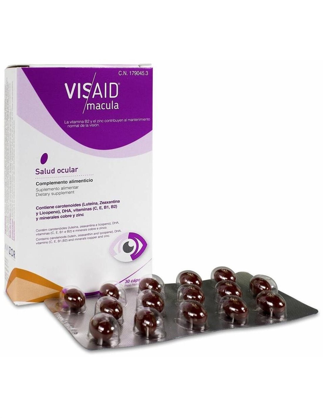 Suplemento rico en carotenoides (Luteína, Zeaxantina y Licopeno), DHA, vitaminas C, E, B1,B2, cobre y zinc. La vitamina B2 y el zinc contribuyen al mantenimiento normal de la visión. Las vitaminas C, B2, E y los minerales cobre y zinc contribuyen a la protección de las células del estrés oxidativo.