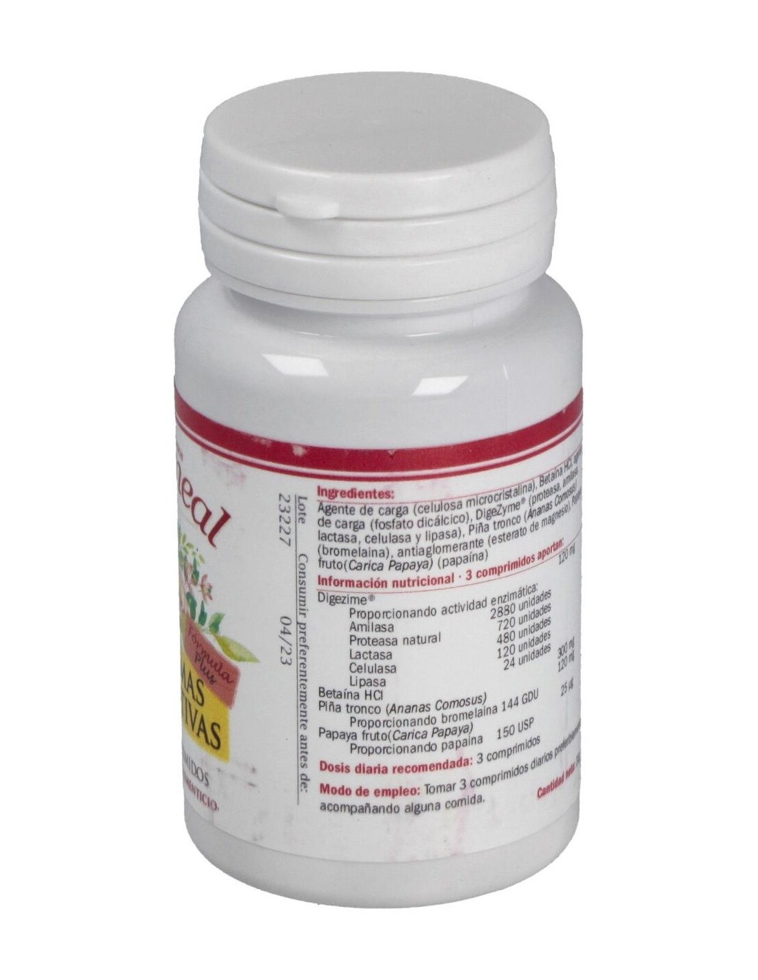 VITAMEALComposiciónBetaina HCI, DigeZyme (Proteasa, Amilasa, Lactasa, Celulasa y Lipasa), Piña tronco (bromelaina), Papaya (papaina)..