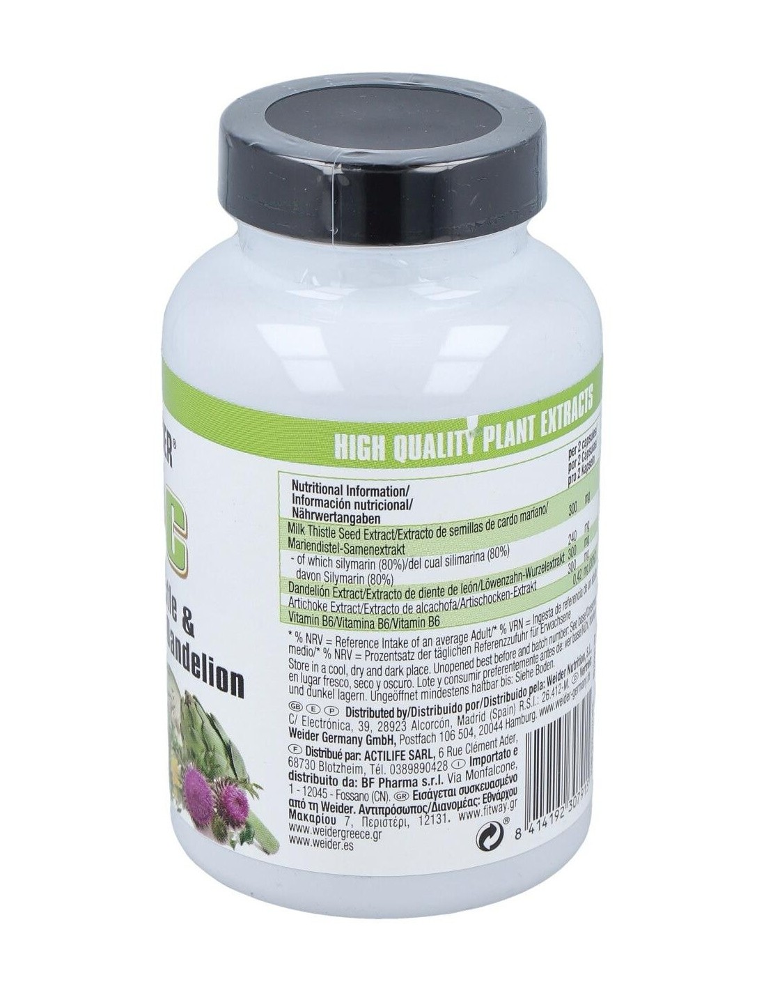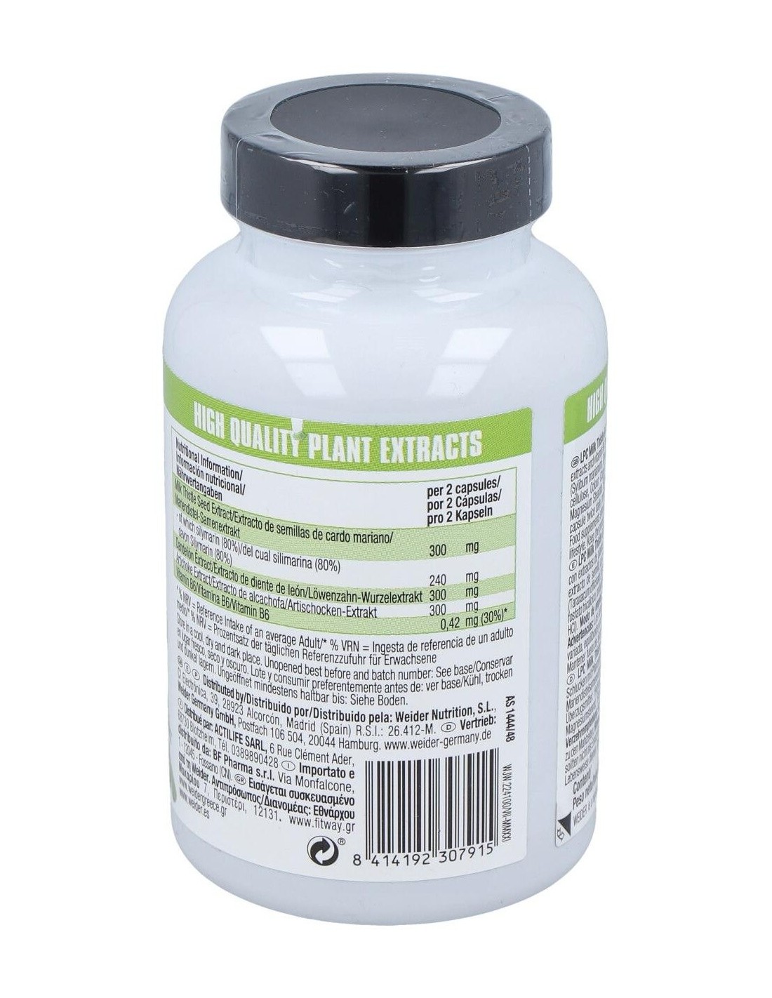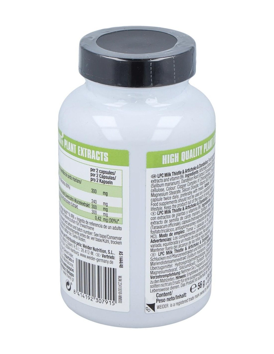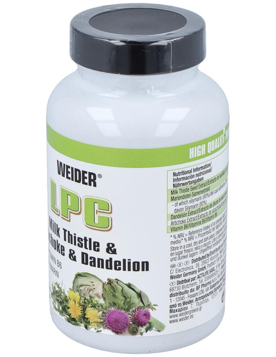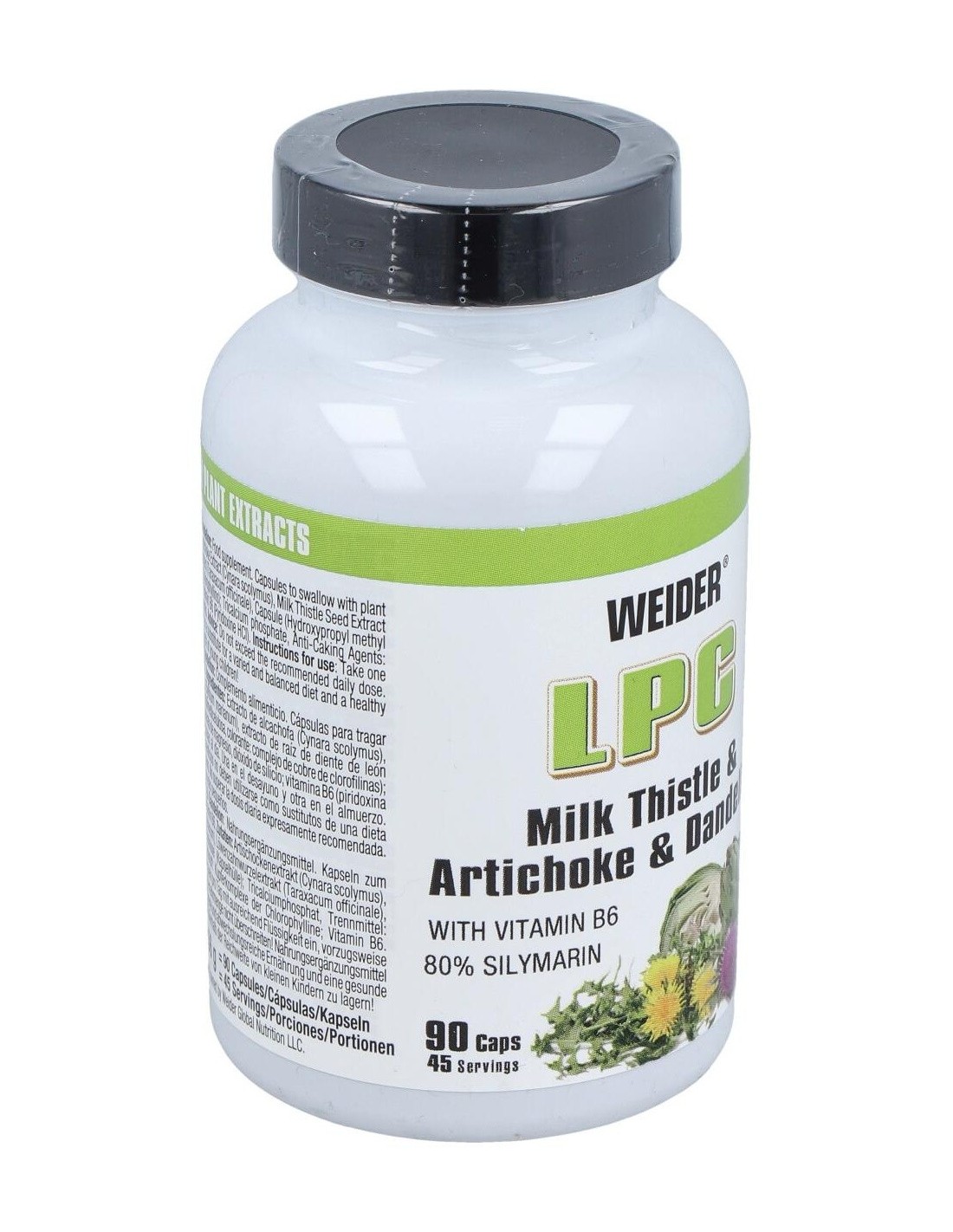 Weider LPC contiene cápsulas enriquecidas con con cardo mariano (80% silimarina), diente de Léon, alcachofa y vitamina B6. Su combinación lo hace ideal para una protección adecuada del sistema hepático.