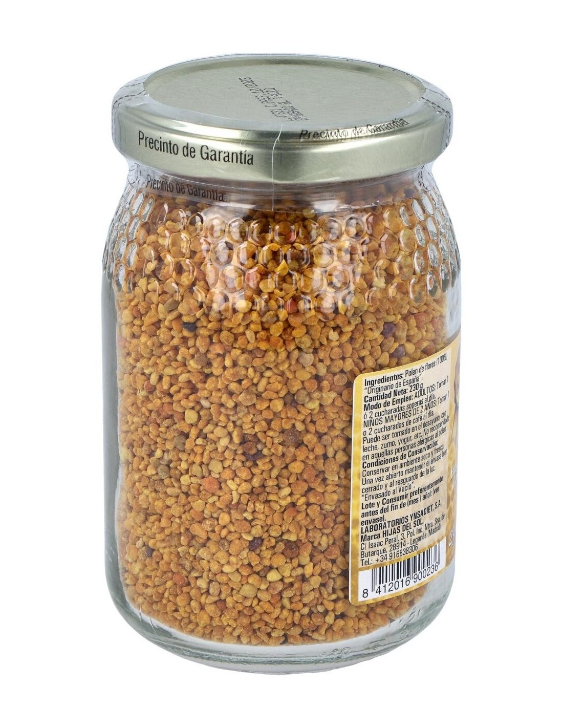 El polen posee propiedades reconstituyentes debido a su contenido equilibrado en carbohidratos, aminoácidos esenciales, enzimas y fitoesteroles. También aporta multitud de antioxidantes de distinto tipo, vitaminas y minerales, entre los que destacan las vitaminas del grupo B, las cuales apoyan el normal funcionamiento del sistema nervioso.
